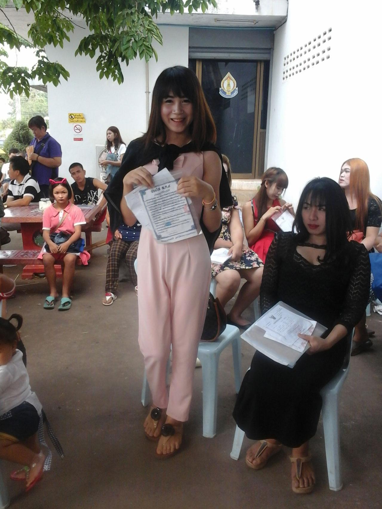 ขณะที่ นายอานนท์ ศรีดารักษ์ และนายสมพร จิตงาม ซึ่งเป็นสาวประเภทสอง บอกว่ายังไม่ได้แปลงเพศ แต่กินยาคุมกำเนิด เพื่อกระตุ้นฮอร์โมนในร่างกาย จะได้มีหน้าอกโตขึ้น และพร้อมจะรับใช้ประเทศชาติ