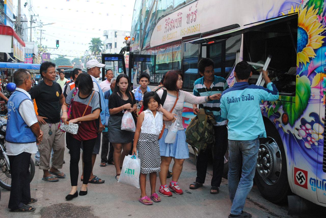 ขณะที่บรรยากาศบริเวณสถานีขนส่ง อ.สวรรคโลก จ.สุโขทัย ตั้งแต่ช่วง 05.00 น.ที่ผ่านมาได้เริ่มมีรถบขส.ที่เดินทางมาจากสถานีขนส่งหมอชิต กรุงเทพฯ เดินทางมาถึงยังสถานีขนส่งสวรรคโลก ทำให้บรรยายสถานีขนส่งเริ่มคึกคักชาวบ้านได้มารับรับญาติที่เดินทางมาจากกรุงเทพฯเป็นจำนวนมาก และที่ผ่านมาได้มีรถของ บขส.และรถร่วมเอกชน ได้ทะยอยเดินทางมาถึงอย่างต่อเนื่องจึงทำชาวบ้านที่ไม่มีญาติมารับใช้บริการรถจยย.รับจ้างเป็นจำนวนมากซึ่งสร้างรายได้ให้กับผู้ที่ขี่รถจยย. เพิ่มขึ้นเป็นเท่าตัว