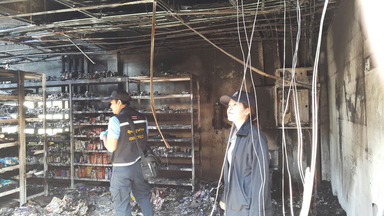 เมื่อเวลา 09.40 น. วันที่ 11 เม.ย. พล.ต.ต.ชลิต แก้วยะรัตน์ ผบก.ภ.จว.พังงา กล่าวถึงเหตุไฟไหม้ร้านสะดวกซื้อ "ซุปเปอร์ชีป" ใน ต.โคกกลอย อ.ตะกั่วทุ่ง จ.พังงา ว่า ทางตำรวจ สภ.โคกกลอย ร่วมกับเจ้าหน้าที่พิสูจน์หลักฐานพังงา วิทยาการ จ.ภูเก็ต ร่วมกันตรวจสถานที่เกิดเหตุ ซึ่งผลการตรวจเบื้องต้น เชื่อว่า จุดต้นเพลิงเกิดบริเวณแผงควบคุมไฟฟ้าที่ผนังห้องอยู่ใกล้กับเครื่องปั่นไฟฟ้าสำรองตั้งอยู่บนพื้น สาเหตุสันนิษฐานว่า เกิดจากระบบไฟฟ้าขัดข้อง ซึ่งต้องตรวจสอบโดยละเอียดอีกครั้ง