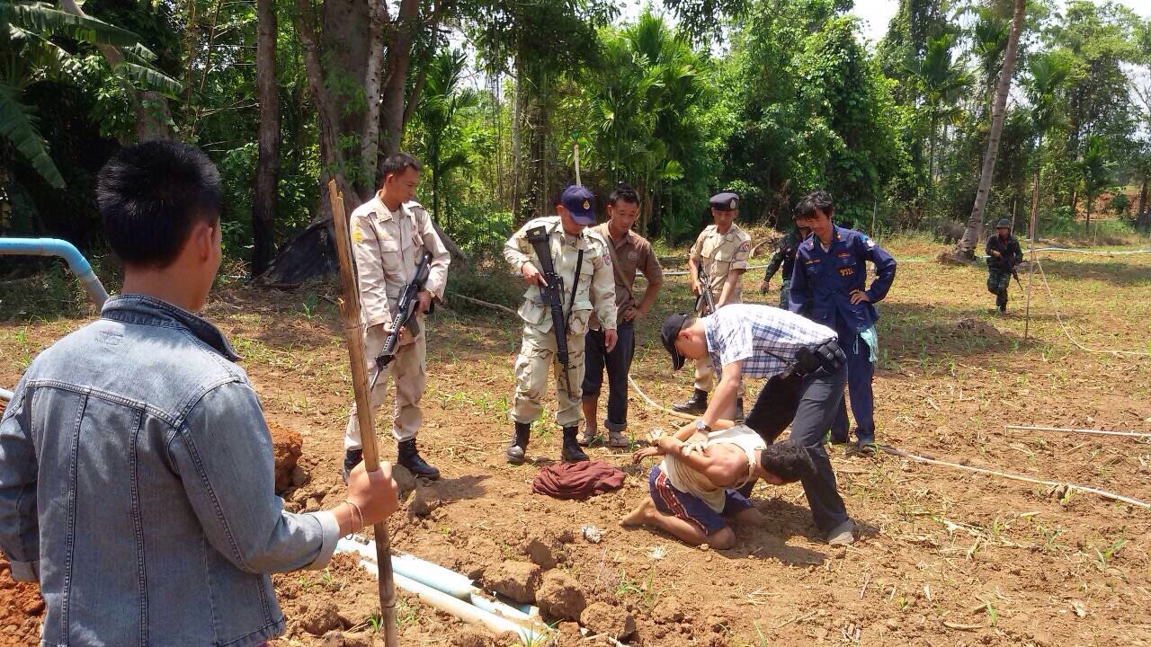 เมื่อเวลา 11.45 น. วันที่ 11 เมษายน 2558 พ.ต.ท.นพดล จันทร์ศรี สว.สส.สภ.พบพระ จ.ตาก พร้อม นายศราวุธ ทังดิน ปลัดป้องกันอำเภอพบพระ ทหารหน่วยเฉพาะกิจ กรมทหารราบที่ 4 เจ้าหน้าที่ ตชด.ที่ 348 และกำลังจำนวนหนึ่ง ได้เข้าปิดล้อมบริเวณป่าช้าบ้านซอละแตะ หมู่ 4 ต.ช่องแคบ อ.พบพระ เพื่อจับกุมตัว นายจีเล ไม่มีนามสกุล อายุ 48 ปี ชาวพม่า หลังก่อเหตุใช้มีดฟันหัว นายรัง กลัดเนินกลุ่ม อายุ 55 ปี ผู้ใหญ่บ้านหมู่ 13 ต.ช่องแคบ จนได้รับบาดเจ็บสาหัส เมื่อช่วงกลางดึกที่ผ่านมา โดยเจ้าหน้าที่พบนายจีเล หลบซ่อนตัวอยู่ในป่า เจ้าหน้าที่สามารถจับกุมและควบคุมตัวมาสอบสวนยัง สภ.พบพระ