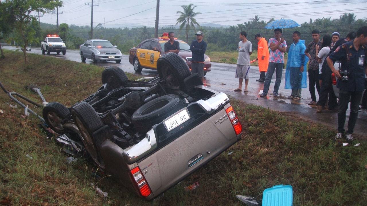 เศร้าพ่อพิมพ์ ร.ร.เทศบาลปากพนัง ขับรถพาภรรยาเที่ยวสงกรานต์กรุงเทพฯ เมื่อถึงทางโค้ง เจอฝนตกถนนลื่นจนพลิกคว่ำหลายตลบอัดเสาไฟฟ้าดับคาที่ ร่างอัดก๊อบปี้คาพวงมาลัย ส่วนเมียบาดเจ็บจากแรงกระแทกเล็กน้อย...