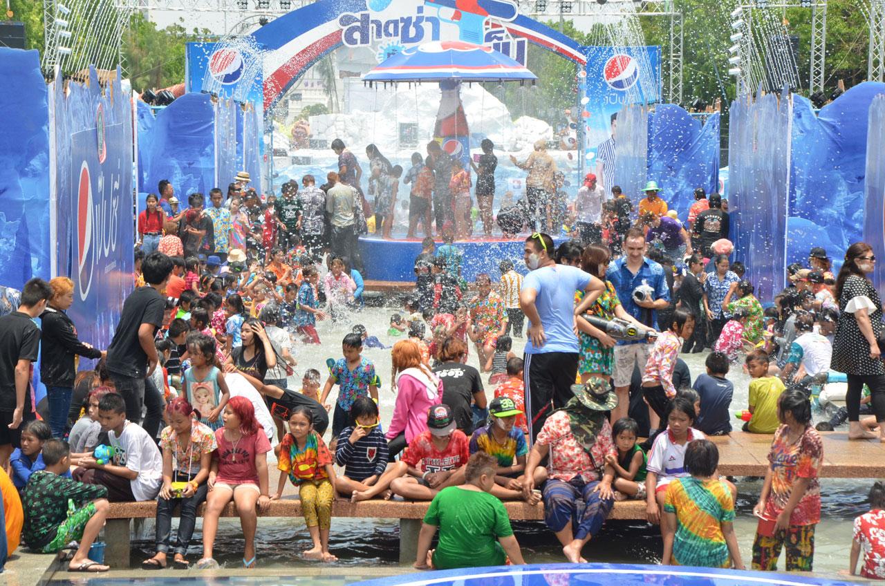 สงกรานต์โคราช "สาดซ่า ท้า ความเย็น" เนรมิตสระน้ำสะอาดกลางเมืองให้เด็กเล่น ส่วนการสาดน้ำคึกคึกสุดขีด ดินสอพอง, ถังน้ำ, ซองกันน้ำ อาหารและเครื่องดื่ม ขายดี