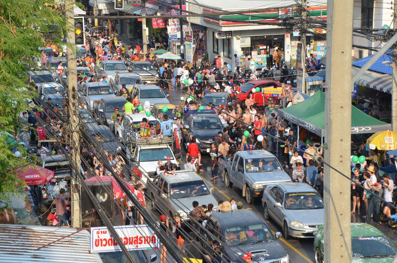 ขณะเดียวกันที่ ‘ถนนข้าวเหนียว’ ในเขตเทศบาลนครขอนแก่น ระยะทางร่วม 1 กม.มีนักท่องเที่ยวและผู้เล่นน้ำสงกรานต์ทยอยกันมาตั้งแต่เช้า จนแน่นเต็มพื้นที่ นายธีระศักดิ์ ธีฆายุพันธ์ นายกเทศมนตรีนครขอนแก่น กล่าวว่า ในปีนี้มีนักท่องเที่ยวเข้ามาเล่นน้ำบนถนนข้าวเหนียวเพิ่มมากขึ้นทุกวัน โดยในวันแรกมีจำนวน 54,000 คน วันที่ 2 จำนวน 60,000 คน วันนี้เป็นวันที่ 3 คาดว่าจะทะลุแสนคน