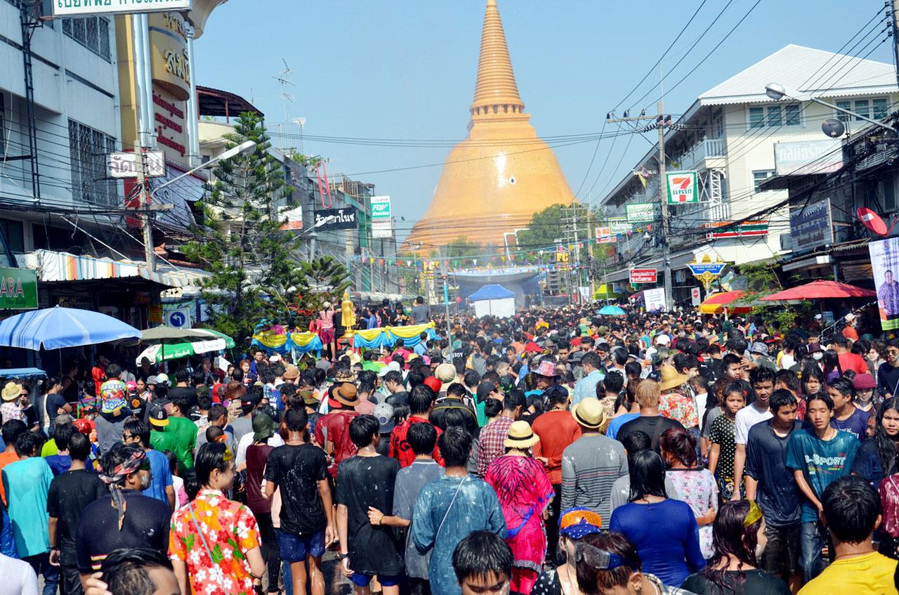 เมื่อเวลา 14.00 น. วันที่ 16 เม.ย.58 ผู้สื่อข่าวรายงานบรรยากาศการเล่นน้ำสงกรานต์ ในเขตเทศบาลนครนครปฐม ที่ถนนราชดำเนิน หรือถนนต้นสน บริเวณหน้าองค์พระปฐมเจดีย์ มีประชาชนและนักท่องเที่ยวมาร่วมสนุกเล่นสาดน้ำกันนับหมื่นคน จนเต็มถนน