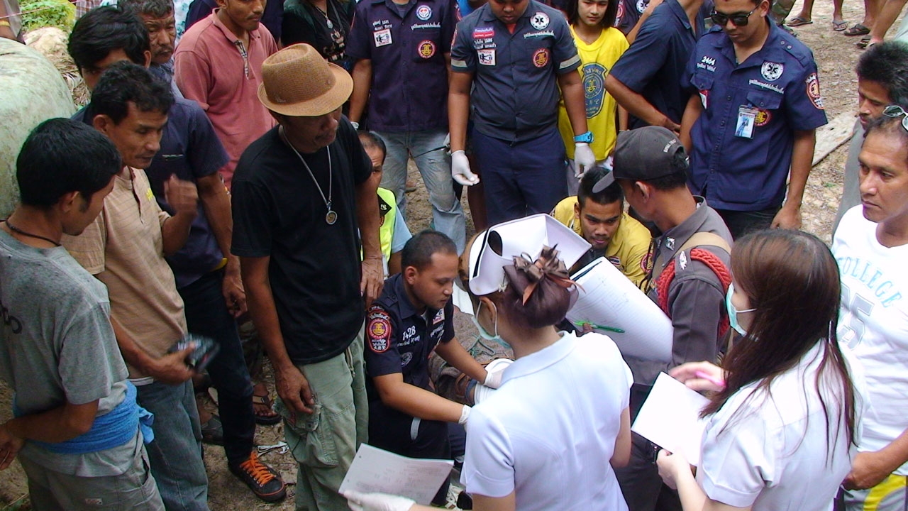 ที่เกิดเหตุอยู่บริเวณชายคาหลังโรงอาหารของโรงเรียนบ้านบางปรน พบศพ นายวีรยุทธ หรือแป๊ะ ไหมทอง อายุ 23 ปี อาชีพทำสวนยาง เป็นชาวบ้านในพื้นที่ หมู่ 7 ต.สินเจริญ อ.พระแสง จ.สุราษฎร์ธานี สภาพศพบริเวณลำคอมีเชือกไนลอนสีเขียวผูกติดกับโครงหลังคาไม้ของโรงอาหาร ห้อยตัวลงมา เท้าห่างจากพื้นดินราว 50 ซม. โดยที่ขาข้างซ้ายยังพาดติดอยู่กับโอ่งน้ำขนาดใหญ่ เสียชีวิตในชุดเสื้อยืดคอกลมสีขาว นุ่งกางเกงขาสั้นแบบวัยรุ่นสีน้ำตาล ค้นในตัวพบกระเป๋า มีเงินสดจำนวนหนึ่ง