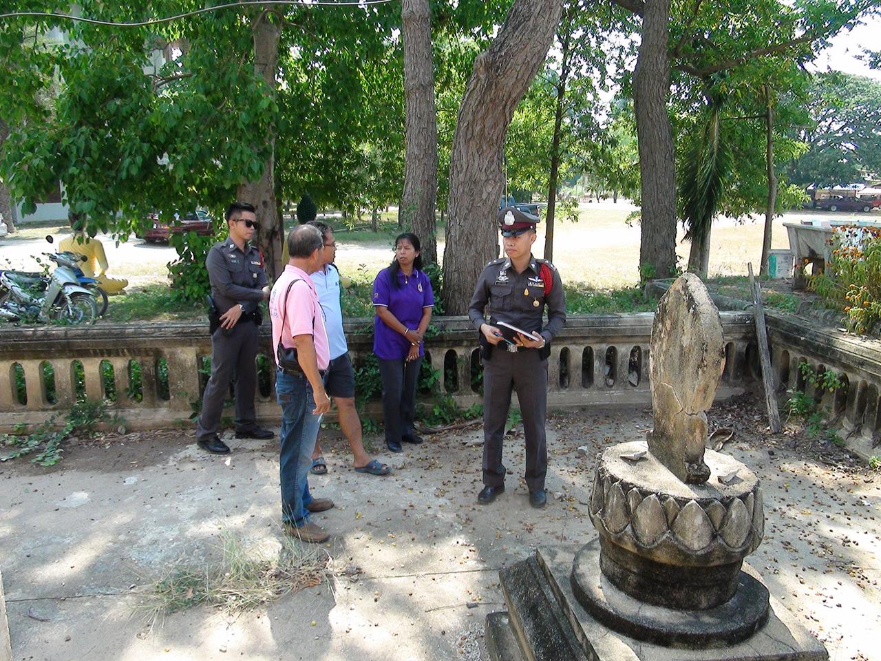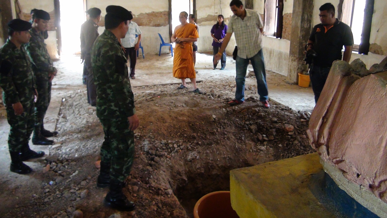 สอบถาม นายอารัญ จันทร์จีน ผู้ใหญ่บ้าน กล่าวว่า ตนเองได้รับแจ้งจากชาวบ้านว่ามีการขุดเจาะโบสถ์ จึงเดินทางมาดู เมื่อเห็นสภาพภายในโบสถ์ก็รู้สึกตกใจเป็นอย่างมาก เพราะไม่ได้รับแจ้งจากเจ้าอาวาสมาก่อนเลย จึงพร้อมด้วยชาวบ้าน เข้าแจ้งความกับเจ้าหน้าที่ตำรวจเพื่อหาตัวคนที่ทำ และสอบสวนว่า การขุดโบสถ์ในครั้งนี้ ได้พบสิ่งของอย่างใดหรือไม่