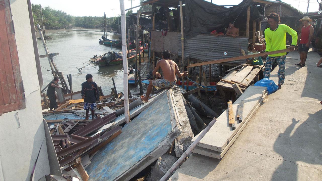 จากการสอบถามนายจักรพันธ์ เจ้าของบ้าน ทราบว่า ปลูกบ้านหลังนี้มาได้ 4-5 ปีแล้ว โดยลำคลองติดบ้านเป็นทางโค้งของน้ำ ช่วงเวลาที่น้ำไหลขึ้นหรือไหลลง ความแรงของน้ำจะไปปะทะกับริมตลิ่ง ทำให้ดินบริเวณนี้เกิดการสไลด์ตัว ยิ่งช่วงนี้เป็นฤดูร้อน น้ำในคลองแห้งขอดแต่ไหลแรง ดินริมตลิ่งเคลื่อนตัวมากและบ่อยครั้ง ตนเห็นท่าไม่ดี จึงช่วยกันขนข้าวของที่อยู่ในบ้านออกมากองไว้บ้านเพื่อนที่อยู่ฝั่งตรงข้าม ก่อนที่บ้านพังถล่มลงมาต่อหน้าต่อตา