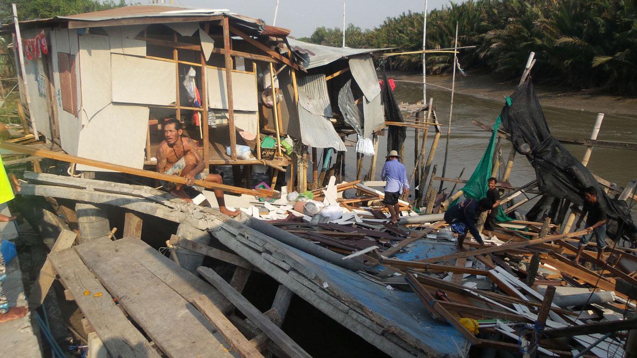 เกิดเหตุบ้านพังถล่มลงคลอง ด้านหลัง ร.ร.ป้อมพระจุลจอมเกล้า สมุทรปราการ เป็นชุมชนแออัด เจ้าของบอกสร้างอาศัยมาหลายปี เห็นท่าไม่ดีเพราะน้ำลงมากตลิ่งเคลื่อนตัวเลยรีบขนของออกมา ก่อนที่บ้าน 2 หลังจะพังลงมาต่อหน้าต่อตา...