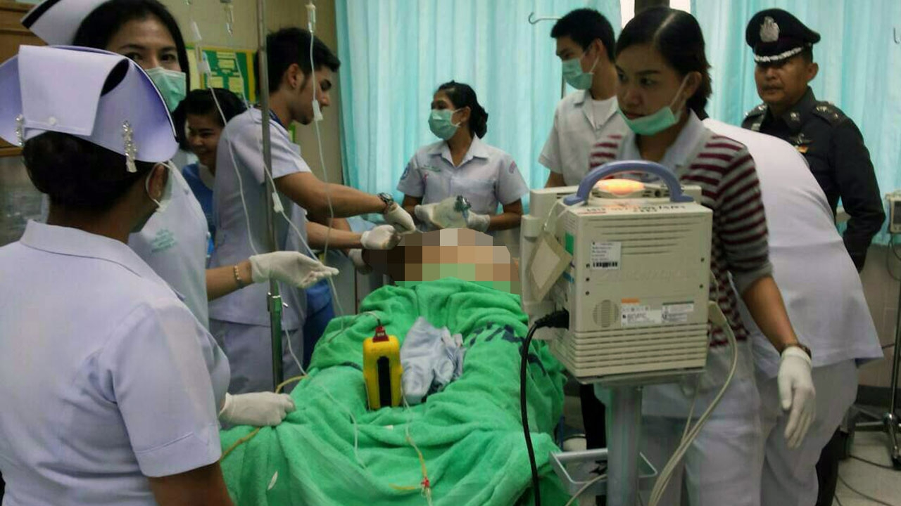 ที่ห้องฉุกเฉินพบชาวบ้านจำนวนหนึ่งยืนรออยู่หน้าห้อง ภายในห้องพบแพทย์และพยาบาลกำลังช่วยกันปั๊มหัวใจชายสูงอายุที่นอนหายใจรวยรินอยู่บนเตียงคนไข้ แต่ไม่สามารถที่จะยื้อชีวิตไว้ได้ เสียชีวิตในเวลาต่อมา ทราบชื่อคือ นายอีด ชายสิทธิ์ อายุ 74 ปี หรือ ‘บังอี๊ด’ อยู่บ้านเลขที่ 253 ถ.พระบารมี ต.ป่าตอง อ.กะทู้ จ.ภูเก็ต ถูกยิงด้วยปืนขนาด .38 เข้าที่บริเวณหลัง 1 นัดทะลุหน้าอก 2 นัดเข้าบริเวณลำตัว ที่เหลืออีก 1 นัดเข้าที่บริเวณศอกขวา และนัดสุดท้ายเข้าที่พวงสวรรค์ แพทย์ได้ผ่าหัวกระสุนบางส่วนออกจากร่างกายเพื่อให้เจ้าหน้าที่ตำรวจเก็บไว้เป็นหลักฐาน จากนั้นญาติได้ขอรับศพกลับไปบำเพ็ญกุศลทางศาสนาอิสลาม