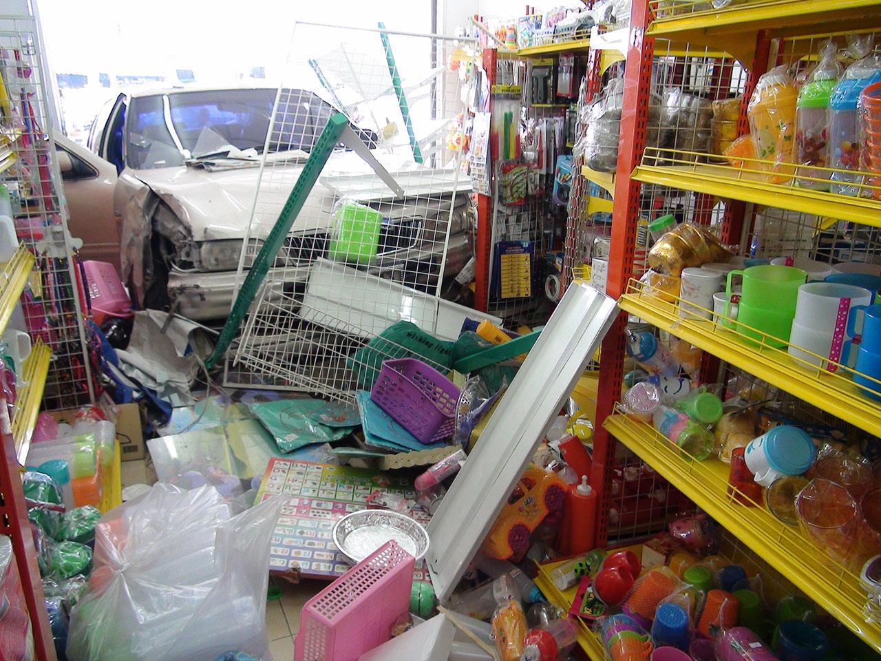 สาวใหญ่ชาวอยุธยาขับรถเก๋งเข้าร้านทุกอย่าง 20 บาท ชนทะลุตั้งแต่กระจกหน้าเข้าไปในร้าน ลูกค้ากำลังเลือกซื้อของโดนชนกระเด็นบาดเจ็บ 1 ราย คนขับบอกถูกเลี้ยวตัดหน้าเลยหักหลบจนเสียหลัก ตร.เร่งสอบว่าใครผิด เพราะจะต้องมีคนจ่ายค่าเสียหาย...