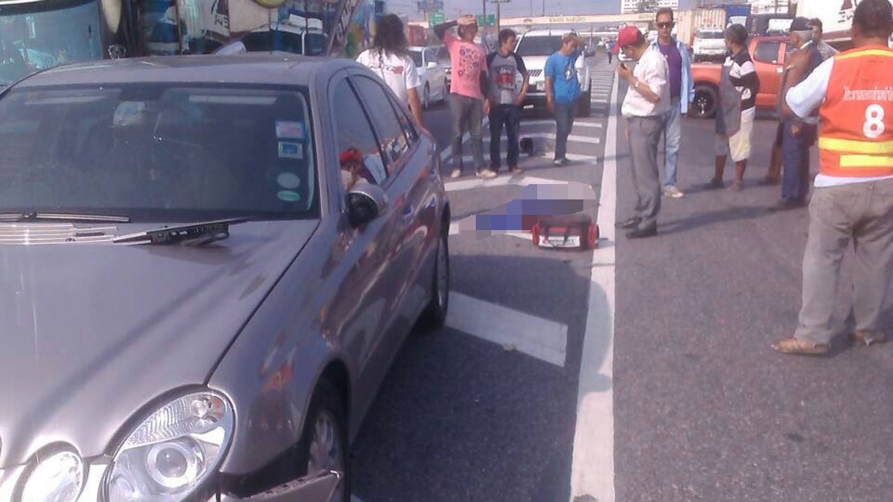 เมื่อเวลา 08.30 น. วันที่ 28 เม.ย. ร.ต.ท.สุทธิพล กลิ่นอุดม พงส.สภ.เมืองชลบุรี รับแจ้งเหตุมีอุบัติเหตุ รถชนกันมีผู้เสียชีวิต บนถนนสุขุมวิท ฝั่งตรงข้ามห้างโลตัส พลัสมอลล์ ม.1 ต.คลองตำหรุ อ.เมือง จ.ชลบุรี ขาเข้า กทม. จึงพร้อมกับ นพ.สุพจน์ พวงลำไย แพทย์เวรชันสูตรศูนย์นิติเวช รพ.ชลบุรี และกู้ภัยมูลนิธิธรรมรัศมีมณีรัตน์ รุดไปตรวจสอบ