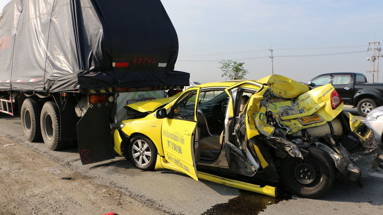 คนขับแท็กซี่สุดซวย จอดรถข้างทางบนมอเตอร์เวย์ จะล้างหน้าข้างทาง ถูกรถบรรทุกหกล้อหักหลบรถพ่วงวิ่งมาชนท้ายเต็มแรงแล้วทับคนขับแท็กซี่ที่อยู่ข้างรถซ้ำ ก่อนรถบรรทุกหกล้อจะพลิกคว่ำขวางถนน ส่วนรถแท็กซี่กระเด็นไปชนท้ายรถพ่วงที่จอดอยู่ข้างทางทำให้แก๊สรั่ว คนขับแท็กซี่ตายคาที่