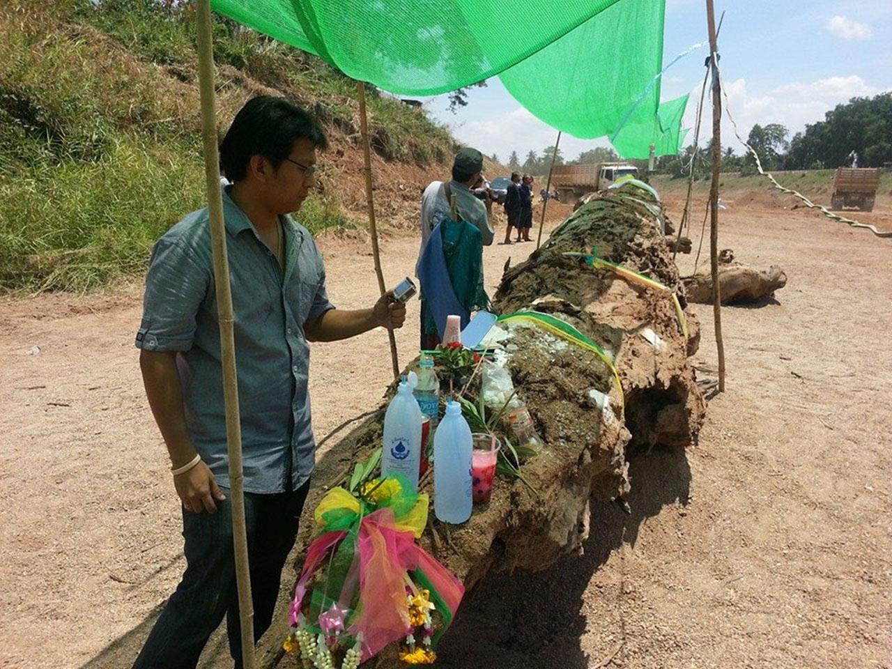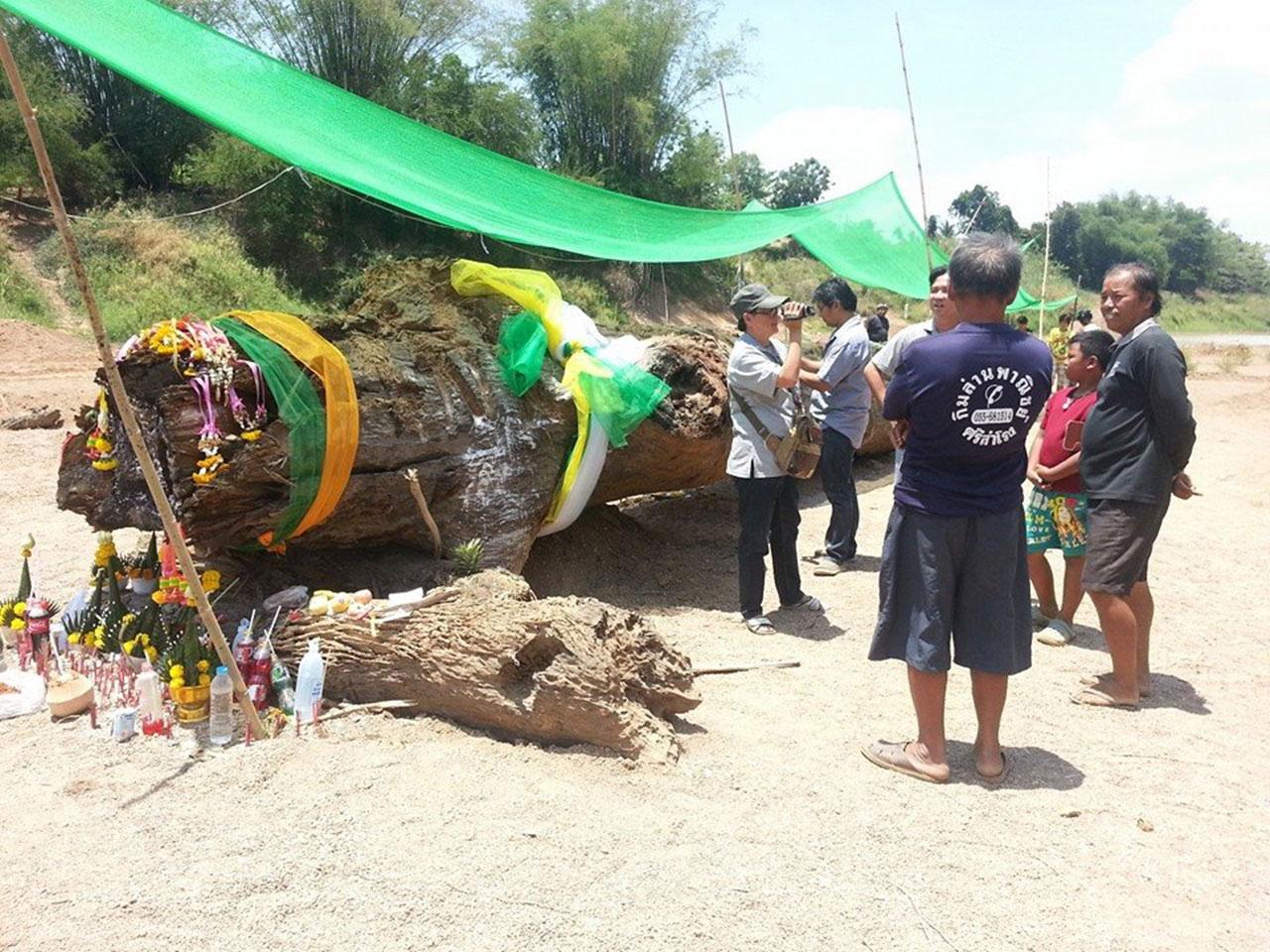 เมื่อวันที่ 30 เม.ย. 58 ผู้สื่อข่าวรายงานว่า หลังจากเกิดกระแสข่าวการพบต้นตะเคียนยักษ์ จมฝังดินอยู่กลางแม่น้ำยม ที่กำลังแห้งขอด บริเวณหลังโรงแรมสุโขทัยรีสอร์ท หมู่ 7 ต.สามเรือน อ.ศรีสำโรง จ.สุโขทัย ตั้งแต่เมื่อกลางดึกของวันที่ 28 เม.ย.ที่ผ่านมา ล่าสุด ชาวบ้านได้ช่วยกันชักลากตะเคียนยักษ์ขึ้นมา จากท้องแม่น้ำเรียบร้อยแล้ว โดยมีความยาวถึง 17.20 เมตร เส้นรอบวง 3.50 เมตร นักเสี่ยงโชคต่างพากันกราบไหว้ พร้อมจุดธูปบูชาผูกผ้าสี เพื่อขอเลขเด็ดกันแล้ว