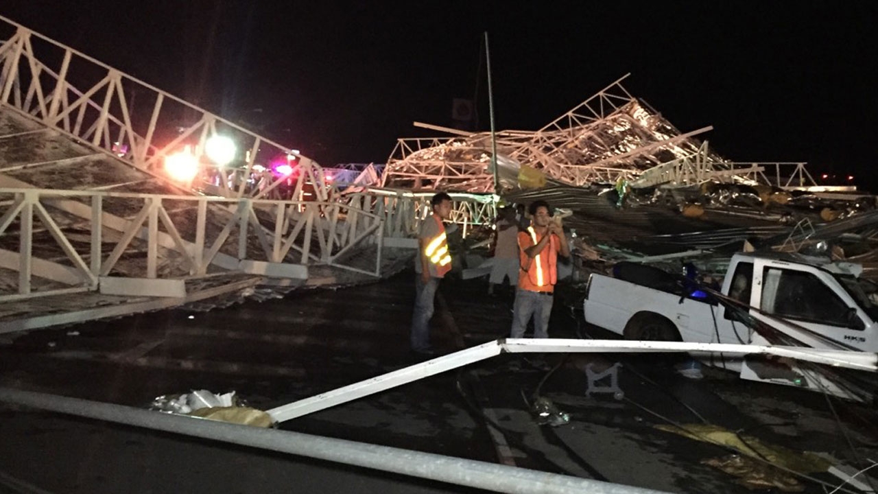 พายุฤดูร้อนพัดถล่มเมืองมหาสารคาม ทำน้ำท่วม ไฟดับทั่วเมือง เสาไฟฟ้าหักโค่นขวางถนน ลมยังพัดหลังคาตลาดไนท์ข้างปั๊มน้ำมันปตท.ตักศิลา ถล่มทับพ่อค้า-แม่ค้า-ปชช.รถยนต์จอดอยู่ จนท.กู้ภัยต้องนำเครื่องตัดถ่าง ช่วยออกมาได้ 20 คนสาหัส 1