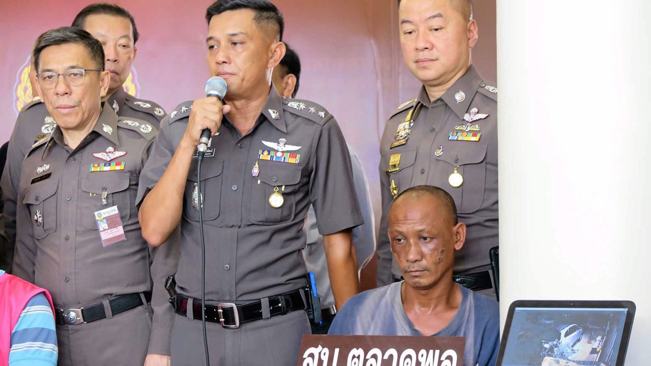 เจ้าหน้าที่ตำรวจนครบาลตลาดพลู กางโต๊ะแถลงผลงานการจับกุมหนุ่มใหญ่วัย 41 ปี ใช้หินทุบหน้าหญิงชราที่มีการเผยแพร่ภาพในสังคมออนไลน์อย่างกว้างขวาง อ้างไม่พอใจถูกด่าเมากาว ตั้งข้อหาหนักพยายามฆ่า...