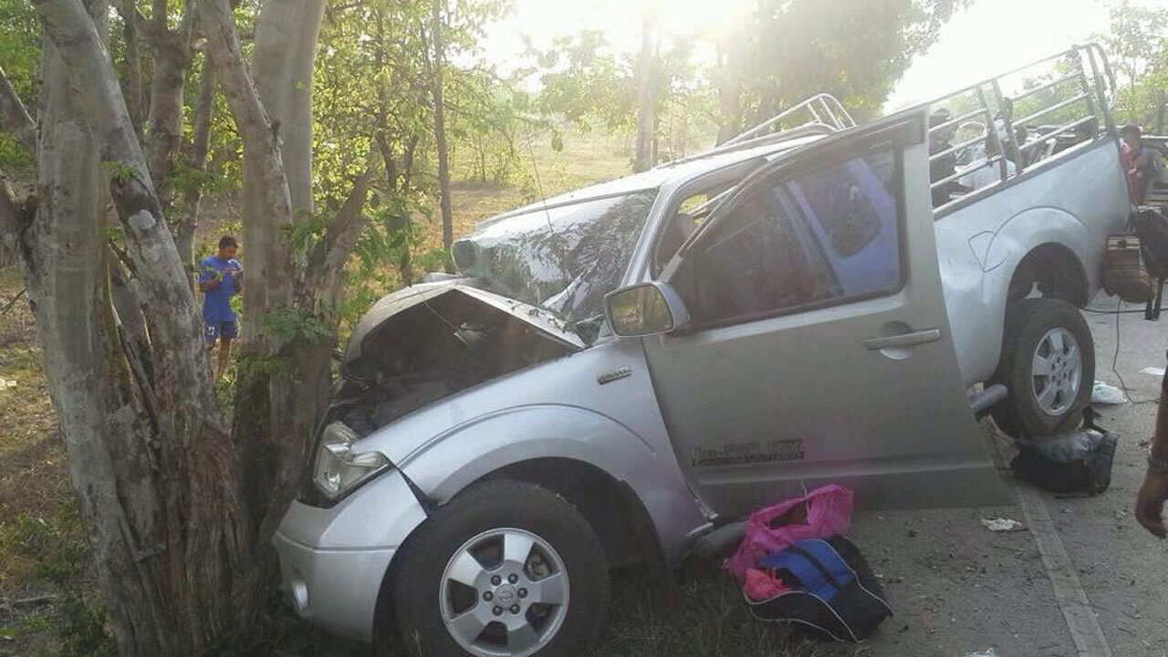 หนุ่มควบปิกอัพพาครอบครัวไปงานแต่งที่ จ.พิษณุโลก ระหว่างทางขากลับหักหลบรถอีแต๋น พุ่งเสยกับต้นไม้ คนในรถกระจัดกระจายบาดเจ็บ รวมคนขับ 12 ราย ในจำนวนนี้สาหัส 5