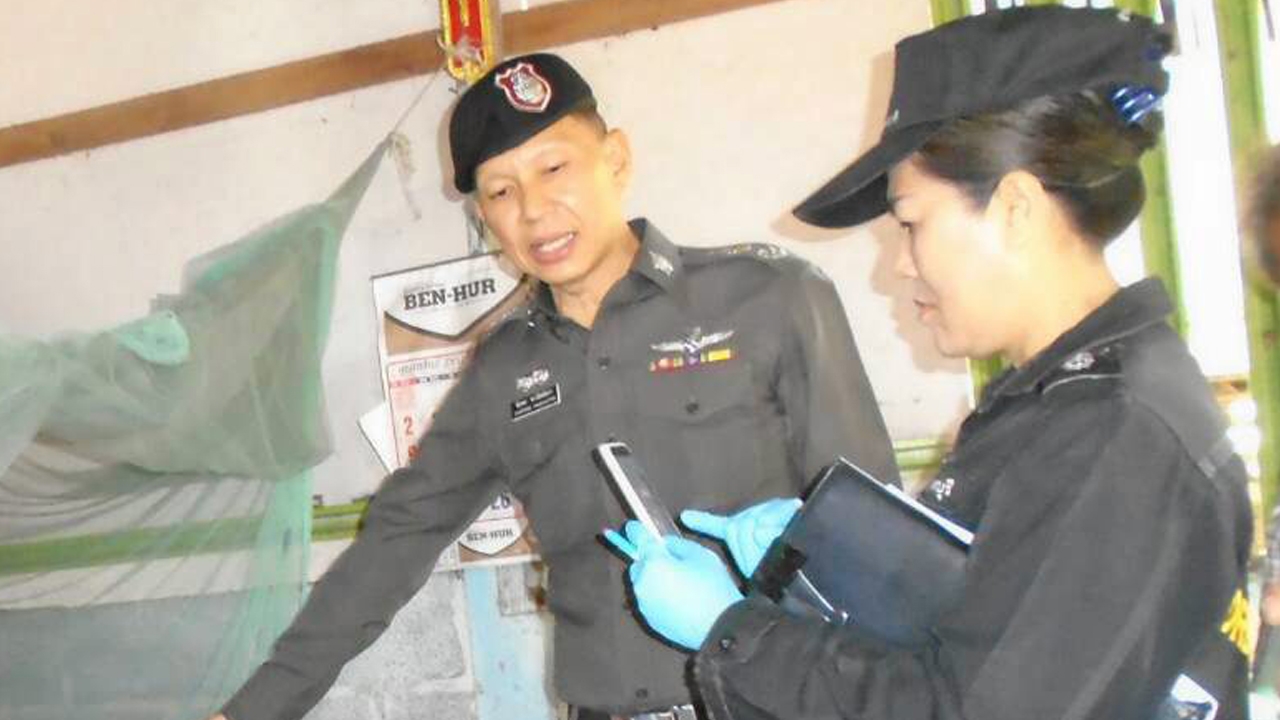 ต่อมา พล.ต.ต.ชัยพร พานิชอัตรา ผบก.ภ.จ.ลพบุรี พ.ต.อ.พรชัย ไข่สนอง ผกก.สส.ภ.จ.ลพบุรี พ.ต.อ.พชรเดช จันทรวงศา ผกก.สภ.บ้านหมี่ พ.ต.ท.คงเดช แสงทอง พงส.ผนพ.สภ.บ้านหมี่ พ.ต.ต.สุภดา ทองก้อน สว.สพฐ.ภ.จ.ลพบุรี ร.ต.ท.ธนพล แก้วมณีวงษ์ พงส.สภ.บ้านหมี่ เข้าตรวจหาหลักฐานในบ้านที่เกิดเหตุ พบก้นบุหรี่ยาเส้น 1 ชิ้น ถูกทิ้งข้างเตียง คาดเป็นของคนร้าย เก็บไว้เป็นหลักฐาน