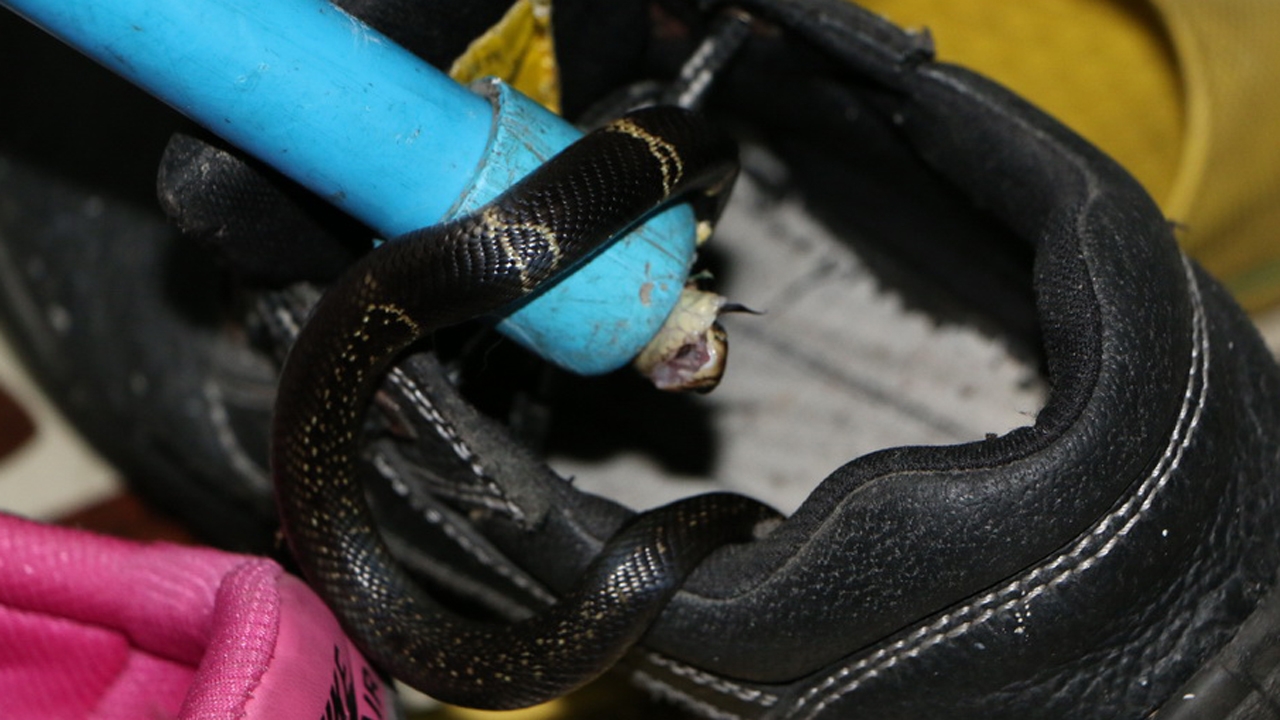 สาว 29 จะใส่รองเท้าผ้าใบที่วางอยู่บนชั้นหน้าบ้านไปทำงาน โชคดีเหลือบไปเห็นลูกงูเห่านอนขดอยู่ในรองเท้า รีบแจ้งกู้ภัยมาจับ หวุดหวิดถูกกัดได้รับอันตราย...