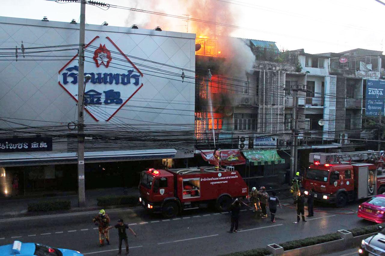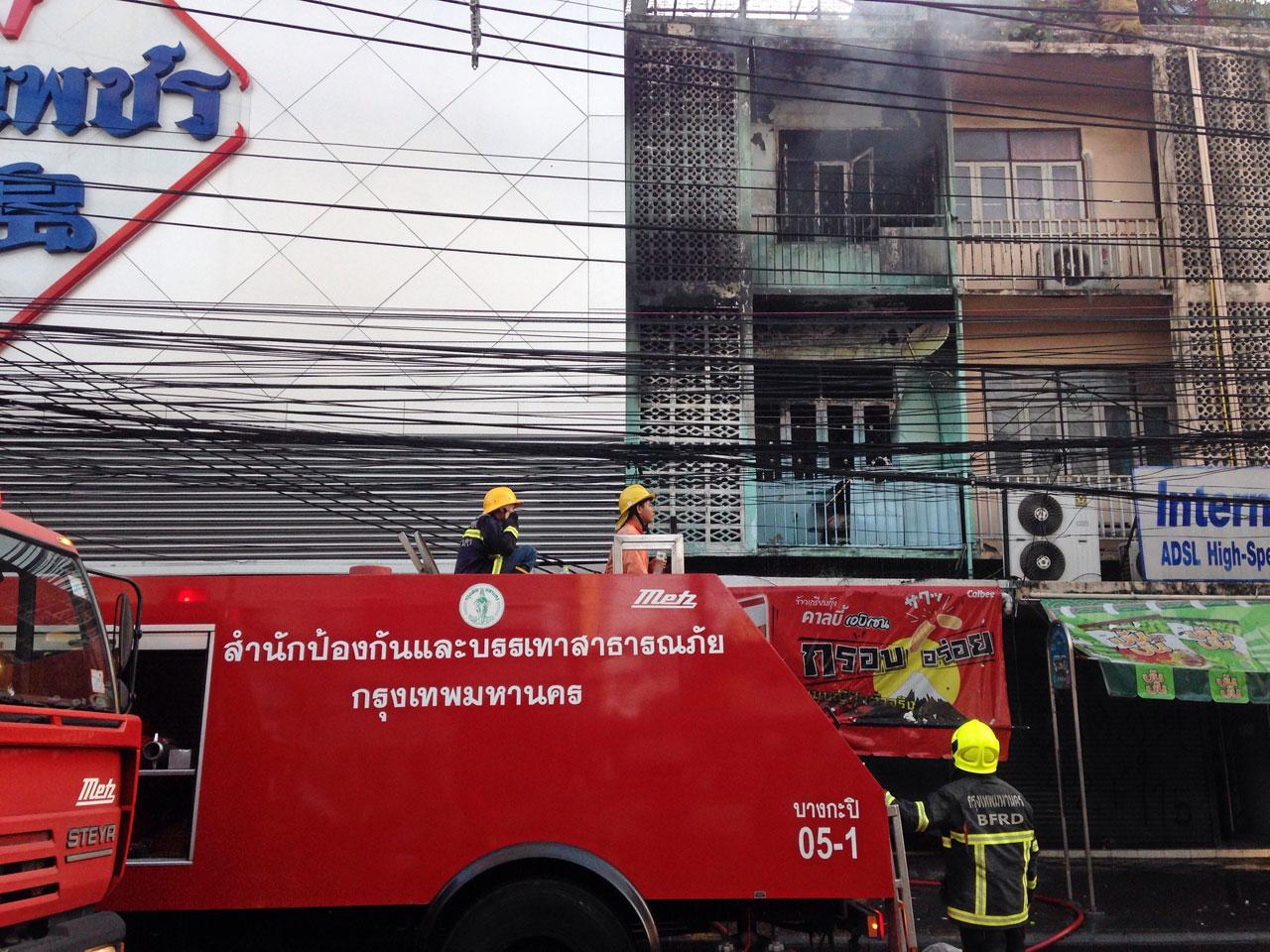 เมื่อเวลา 05.30 น. วันที่ 5 พ.ค. 58 ร.ต.ท.วินิต แสงศิลา พนักงานสอบสวน สน.มักกะสัน รับแจ้งเหตุเพลิงไหม้อาคารพาณิชย์ บริเวณถนนเพชรบุรีตัดใหม่ด้านขาออก แขวงบางกะปิ เขตห้วยขวาง กรุงเทพฯ จึงรายงานให้ผู้บังคับบัญชาทราบ ก่อนรุดไปตรวจสอบ พร้อมด้วย พ.ต.อ.สรวิศ เพ็ชรคำ ผกก.สน.มักกะสัน พ.ต.ท.จิรวัฒน์ ยอดกระโหม รอง ผกก.ป. รถน้ำจากสำนักป้องกันและบรรเทาสาธารณภัยกรุงเทพมหานคร และเจ้าหน้าที่มูลนิธิป่อเต็กตึ๊ง