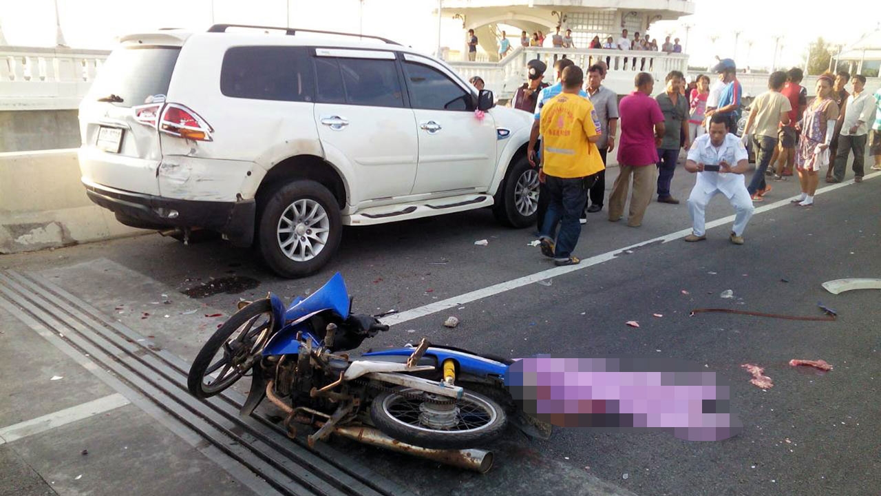 เมื่อเวลา 18.00 น. วันที่ 5 พ.ค. พ.ต.ท.สันติ บุญประกอบปราณ พนักงานสอบสวน สภ.ท่าฉัตรไชย จ.ภูเก็ต ได้รับแจ้งจากอาสาสมัครมูลนิธิกุศลธรรมภูเก็ตว่า เกิดอุบัติเหตุรถจักรยานยนต์ พุ่งชนท้ายรถที่จอดบนสะพานท้าวเทพกระษัตรี ต.ไม้ขาว อ.ถลาง มีผู้บาดเจ็บสาหัสและเสียชีวิตอยู่ที่เกิดเหตุ จึงพร้อมด้วยหน่วยกู้ภัยมูลนิธิกุศลธรรมภูเก็ต รุดไปตรวจสอบ