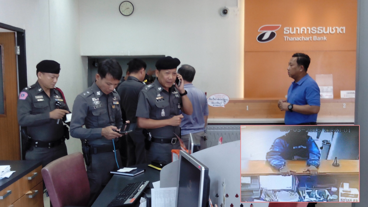 ด้าน พล.ต.ต.ฉันทวิทย์ รอง ผบช.น กล่าวว่า จากการตรวจสอบในเบื้องต้นพบคนร้ายทั้งคู่ อายุราว 35-45 ปี ไม่ได้อำพรางใบหน้าซึ่งกล้องวงจรปิดจับภาพได้อย่างชัดเจน เมื่อเวลา 13.42 น. อาศัยเวลาที่พนักงานในเคาน์เตอร์ทำงานอยู่เพียง 2 คน ส่วนลูกค้าในธนาคารมีเพียงคนเดียวเข้ามาก่อเหตุคาดว่าคงมาดูลาดเลาเอาไว้ก่อนหน้านี้แล้ว ขณะนี้ตำรวจกำลังสกัดจับแท็กซี่ยานพาหนะของคนร้าย และแกะรอยจากกล้องวงจรปิดว่าหลบหนีไปทางใด ก่อนติดตามตัวมาดำเนินคดีตามกฎหมายต่อไป