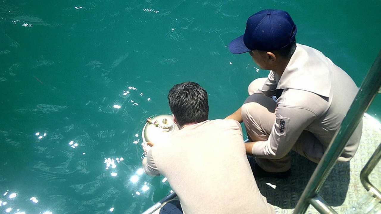 ครอบครัว “จีระวงศ์ไกรสร” นำอัฐิผู้ช่วยแพทย์สาวไทยทีมปีนเขาเอเวอเรสต์ ขึ้นเรือ กร.704 ลอยอังคารอ่าวสัตหีบ จ.ชลบุรี หลังประสบเหตุแผ่นดินไหวในเนปาล