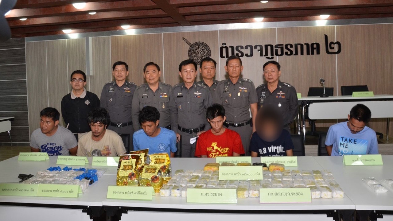 เมื่อเวลา 10.00 น. วันที่ 14 พ.ค. 58 ที่ห้องประชุมตำรวจภาค 2 อ.เมือง จ.ชลบุรี โดย พล.ต.ท.ธเนตร์ พิณเมืองงาม ผบช.ภ. 2 พร้อมด้วย พล.ต.ต.สุรพล วิรัตน์โยสินทร์ รอง ผบช.ภ.2 พล.ต.ต.กิตติพงศ์ เงามุข รอง ผบช.ภ.2 พล.ต.ต.ฐนพล มณีภาค รอง ผบช.ภ.2 พล.ต.ต.ชุมพล ฉันทะจำรัสศิลป์ ผบก.ภ.จ.ระยอง ร่วมกันแถลงการจับกุมเอเย่นต์ยาเสพติดรายใหญ่เมืองระยอง ในเขตนิคมอุตสาหกรรมมาบตาพุด อ.เมืองระยอง และ อ.พัฒนานิคม จ.ระยอง ที่ลักลอบค้ายาเสพติดมาเป็นเวลานาน และเป็นตัวการใหญ่รับยาเสพติดมาจากภาคเหนือ คือ นายสมหมาย แก้วอำไพ หรือบังมีน ลูกสมุนเครือข่าย พ.ท.ยี่เซ พร้อมของกลางบ้ากว่า 2 แสนเม็ด ยาไอซ์ 5 กก. รวมมูลค่าขายกว่า 100 ล้านบาท โดยนำถุงยาไอซ์ ยัดซ่อนในถุงชาจีน เพื่อตบตาเจ้าหน้าที่