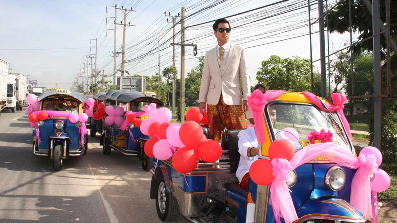 15:45 น. ขบวนขันหมาก "ตุ๊กตุ๊ก" ลูกชาย สว.จร.เมืองปากน้ำ ทำเท่ ใช้รถ 50 คันร่วมขบวน ยกไปสู่ขอเจ้าสาวลูกร้านอาหารดัง "ครัวบุญเลิศ" ใครเห็นก็ฮือฮาและแปลกใจว่า มันขบวนแห่อะไรกันละนี่