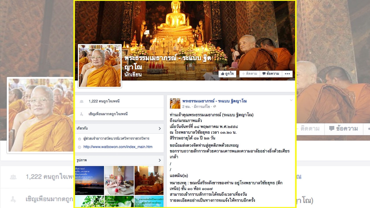 ขณะที่ศิษยานุศิษย์ได้เข้าแสดงความอาลัย กับการสูญเสียพระนักเทศน์ นักบรรยายธรรม นักเขียนธรรมชื่อดัง พร้อมขอน้อมส่งดวงวิญญาณสู่แดนพระนิพพาน.