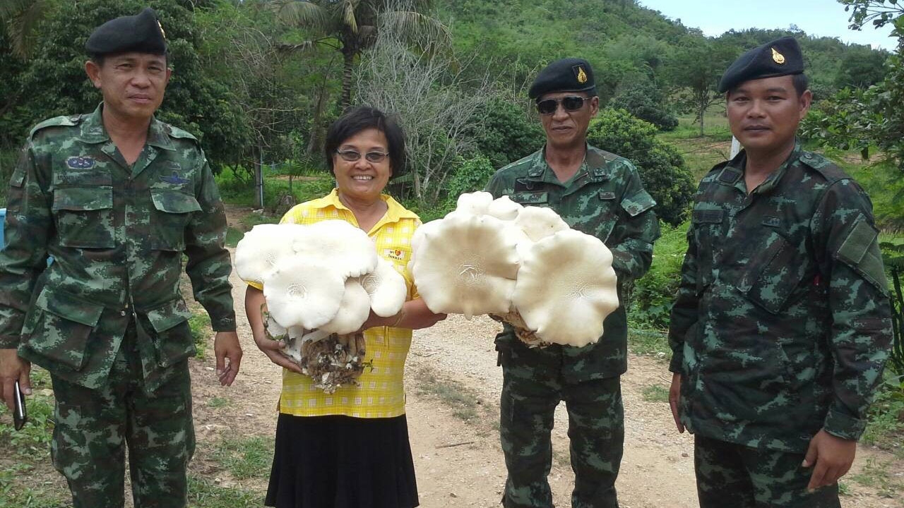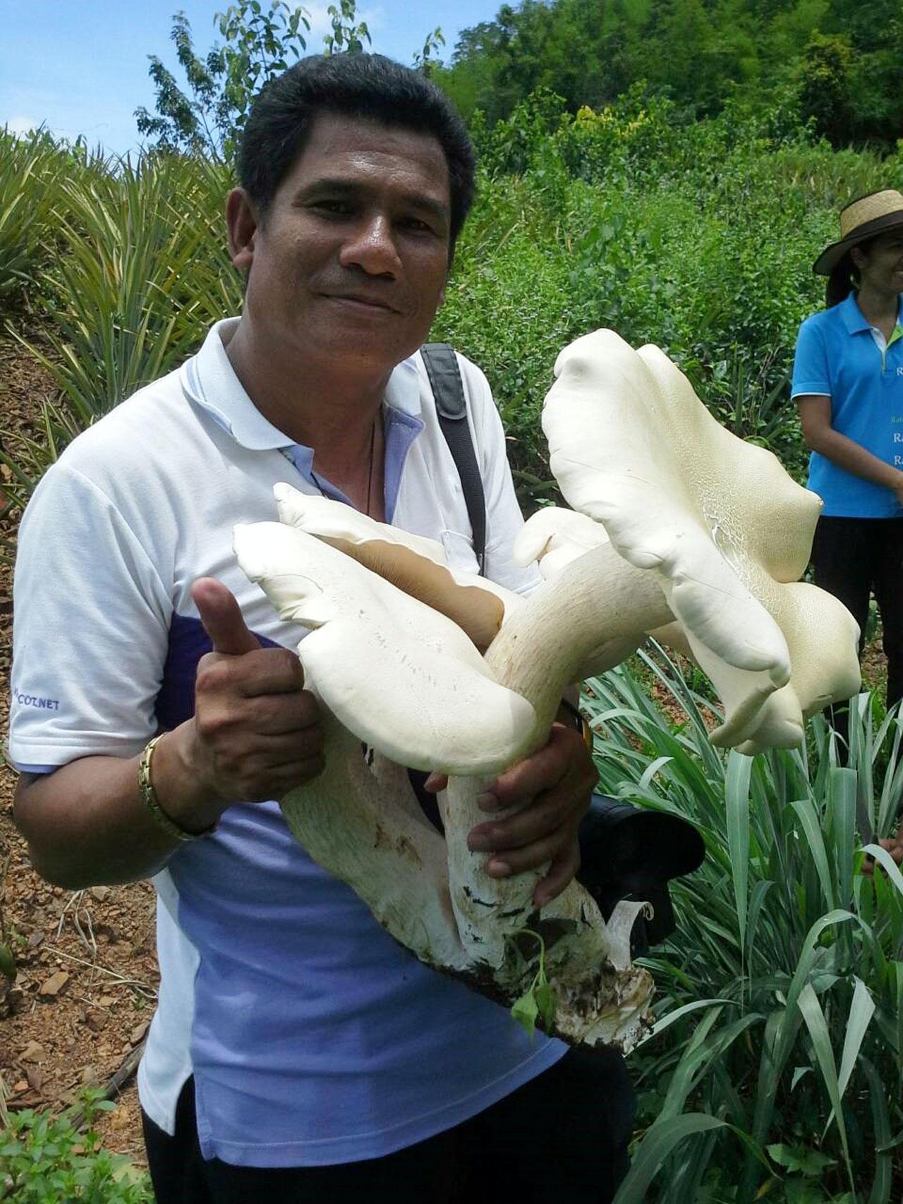 นายเกรียงศักดิ์ เจ้าของไร่ เผยว่า เห็ดที่พบนั้นได้สอบถามไปยังหน่วยงานที่เชี่ยวชาญแล้วบอกว่า เป็นเห็ดตีนช้าง หรือ งวงช้าง ที่มีลักษณะดอกใหญ่ ถ้าดอกใหญ่เต็มที่จะมีน้ำหนักเกือบ 2 กิโลกรัม จะพบเห็นได้ทางภาคอีสาน เป็นเห็ดไม่มีพิษ สามารถปรุงเป็นอาหารรับประทานได้ มีรสชาติอร่อยคล้ายกับเห็ดเป๋าฮื้อ นำไปทำอาหารเมนูเห็ดทอดกรอบ ต้มยำ ยำเห็ด ดอกเดียวกินได้ทั้งครอบครัว ส่วนที่เห็ดดังกล่าวมาขึ้นในพื้นที่นั้น เนื่องจากมีฝนตกติดต่อมาหลายวัน ทำให้บริเวณพื้นที่ อ.บ้านคา ที่มีพื้นที่ป่าไม้ที่อุดมสมบูรณ์ ทำให้มีพันธุ์พืชหลากหลายชนิดขึ้น ซึ่งทางเจ้าหน้าที่ทหารพร้อมกับชาวบ้านได้ช่วยกันขุดดอกเห็ดขึ้นมา โดยเห็ดแต่ละดอกมีขนาดใหญ่วัดเส้นผ่านศูนย์กลางได้กว่า 30 ซม. ก้านดอกขนาดเท่าแขนคน ขึ้นเป็นกลุ่มประมาณ 4-8 ดอก และได้แจกจ่ายให้กับชาวบ้านที่ชอบกินเห็ดไปปรุงอาหาร เพื่อรับประทานต่อไป