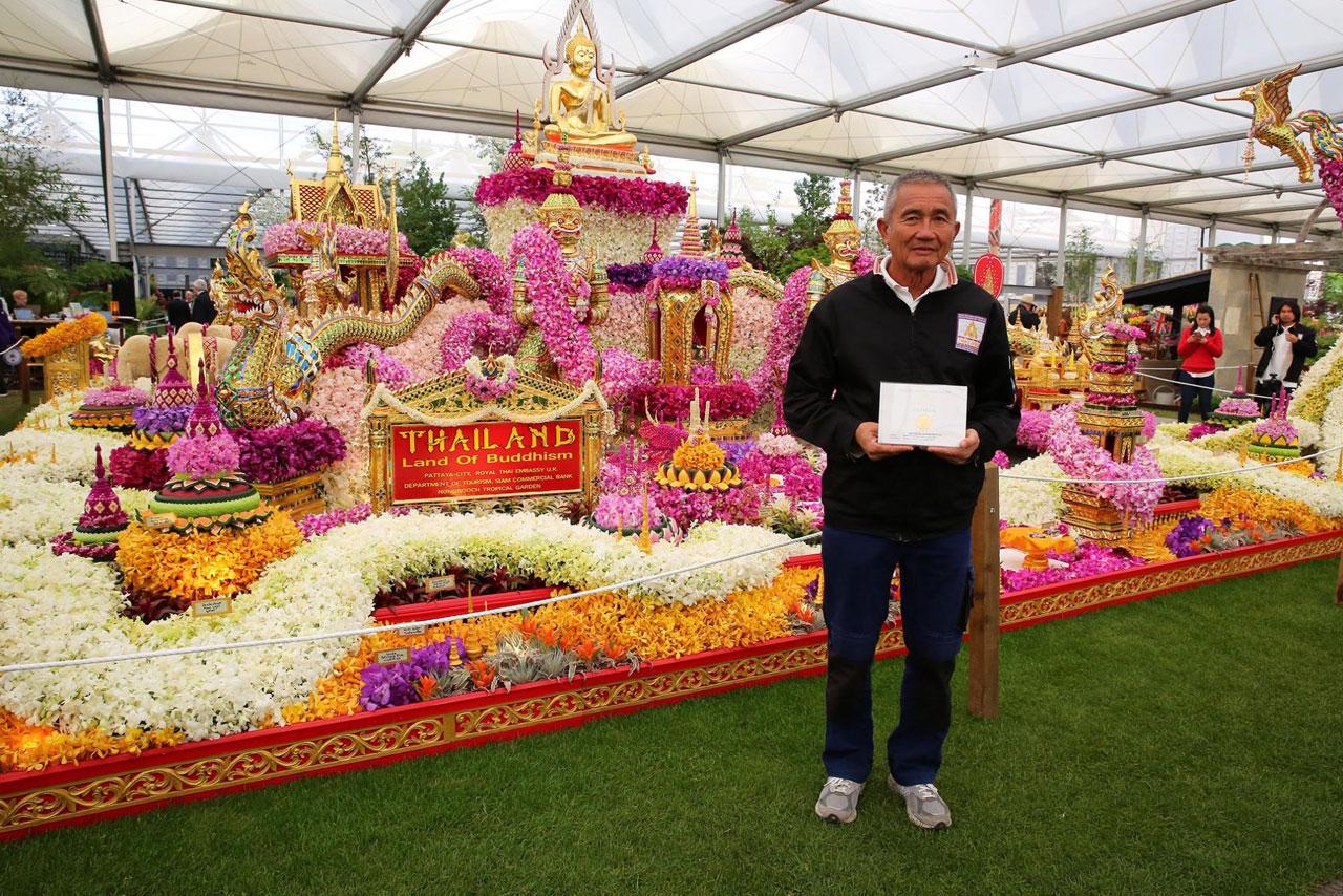 เมื่อตอนเช้าของวันอังคารที่ 19 พ.ค. 58 ตามเวลาท้องถิ่นประเทศอังกฤษ นายกัมพล ตันสัจจา เปิดเผยจากประเทศอังกฤษว่า ได้มีการมอบประกาศนียบัตรรับรองจากคณะกรรมการ "เชลซี ฟลาวเวอร์ โชว์ ปี 2015" เพื่อประกาศว่า สวนดอกไม้จากประเทศไทย ได้รับรางวัลเหรียญทองในการประกวดจัดสวนประจำปีนี้ อันเป็นรางวัลสูงสุดจากทั้งหมด 4 รางวัล ได้แก่ เหรียญทอง เหรียญทองบรอนซ์ เหรียญเงิน และเหรียญบรอนซ์ ด้วยแนวคิด "คนไทยกับพระพุทธศาสนา" หรือ Thailand : Land of Buddhism