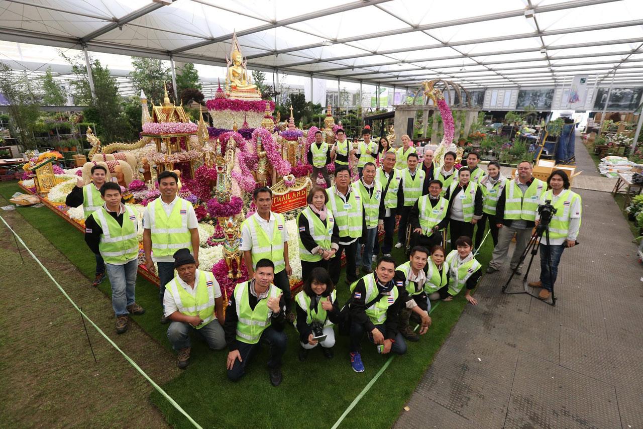 ทั้งนี้ ทีมงานได้ตกแต่งสวน โดยใช้ดอกกล้วยไม้ไทยเป็นหลัก พร้อมนำปฏิมากรรมและสถาปัตยกรรมไทย ที่เกี่ยวข้องกับพระพุทธศาสนามาผสมผสานอย่างลงตัว และสวยงาม ประณีต โดยฝีมือทีมนักจัดสวนของสวนนงนุชพัทยา ตัวแทนประเทศไทย