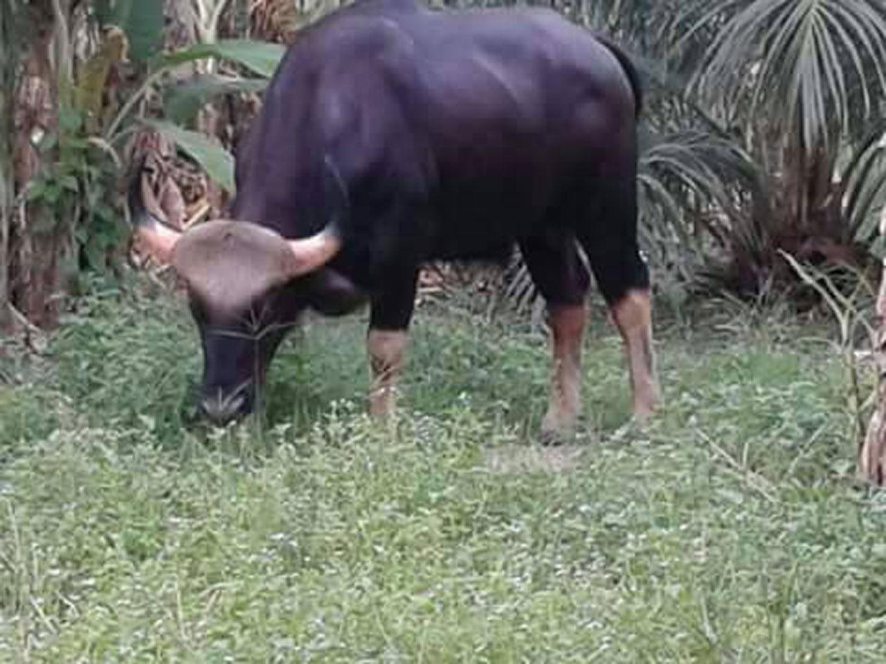 ทั้งนี้ ชาวบ้านบอกว่า พบกระทิงมาหากินอยู่ในสวน มีท่าทางค่อนข้างดุร้าย ขวิดทำลายต้นยาง และมีวัวเพศผู้ของชาวบ้านถูกไล่ขวิด จนบาดเจ็บด้วย
