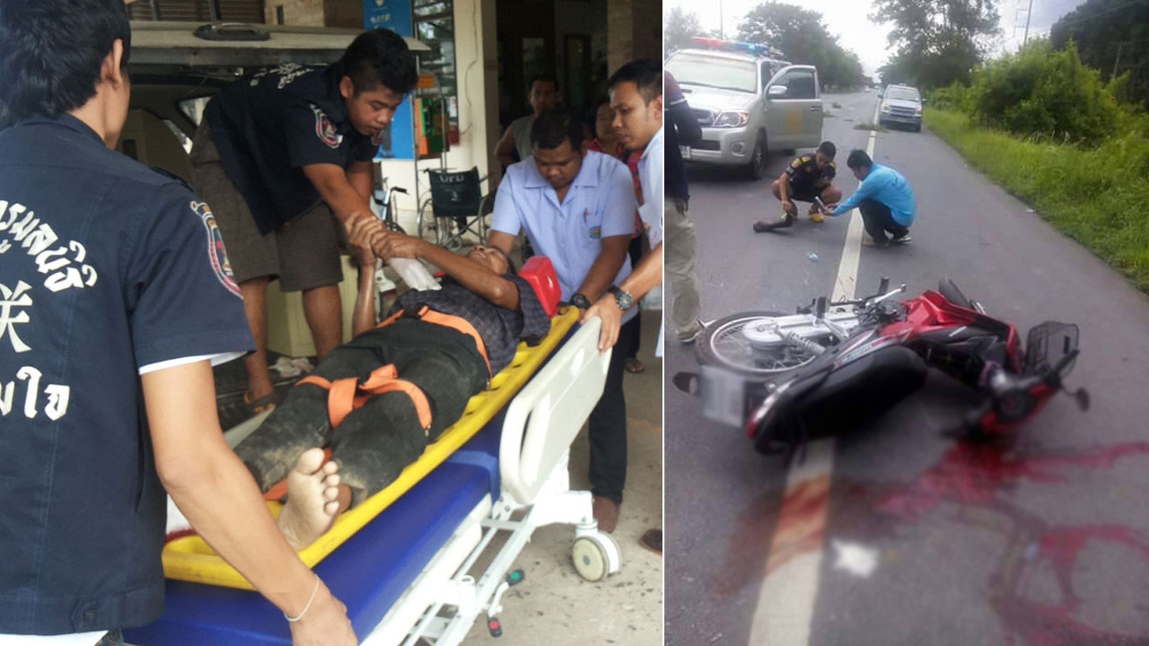 เมื่อเวลา 15.20 น. วันที่ 21 พ.ค. 58 พ.ต.ท.สมเกียรติ เทียบศรไชย พงส. สภ.ทุ่งใหญ่ จ.นครศรีธรรมราช พร้อมด้วยมูลนิธิประชาร่วมใจ และมูลนิธิสยามรวมใจปู่อินทร์ รุดไปตรวจสอบอุบัติเหตุ รถบรรทุกพ่วง 18 ล้อเฉี่ยวชนกับรถจักรยานยนต์มีผู้ได้รับบาดเจ็บ เหตุเกิดบนถนนสายเอเชียฝั่งขาล่อง หมู่ 10 บ้านท่าโรงสูบ ต.ทุ่งใหญ่ จ.นครศรีธรรมราช