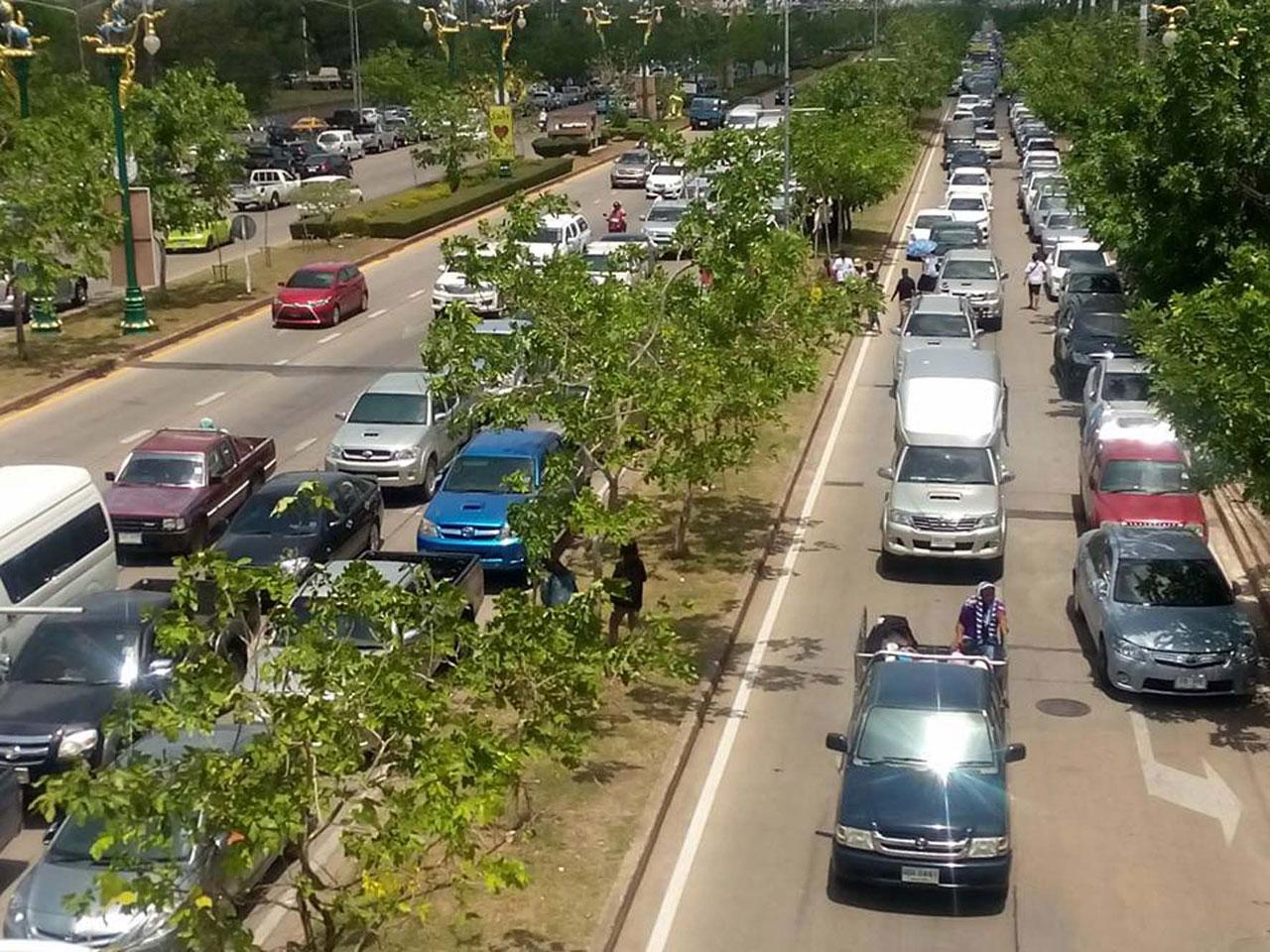ขณะที่บรรยากาศประชาชนที่เดินทางมากราบไหว้สรีระของหลวงพ่อคูณ ในวันที่ 7 ซึ่งเป็นวันสุดท้าย ช่วงเช้ากว่า 4 แสนคน ทำให้ถนนทุกสายการจราจรติดตลอดทุกเส้นทาง โดยเฉพาะที่ถนนกัลปพฤกษ์ ทางเข้าหอประชุมกาญจนาภิเษก การจราจรติดขัดเป็นอย่างมาก