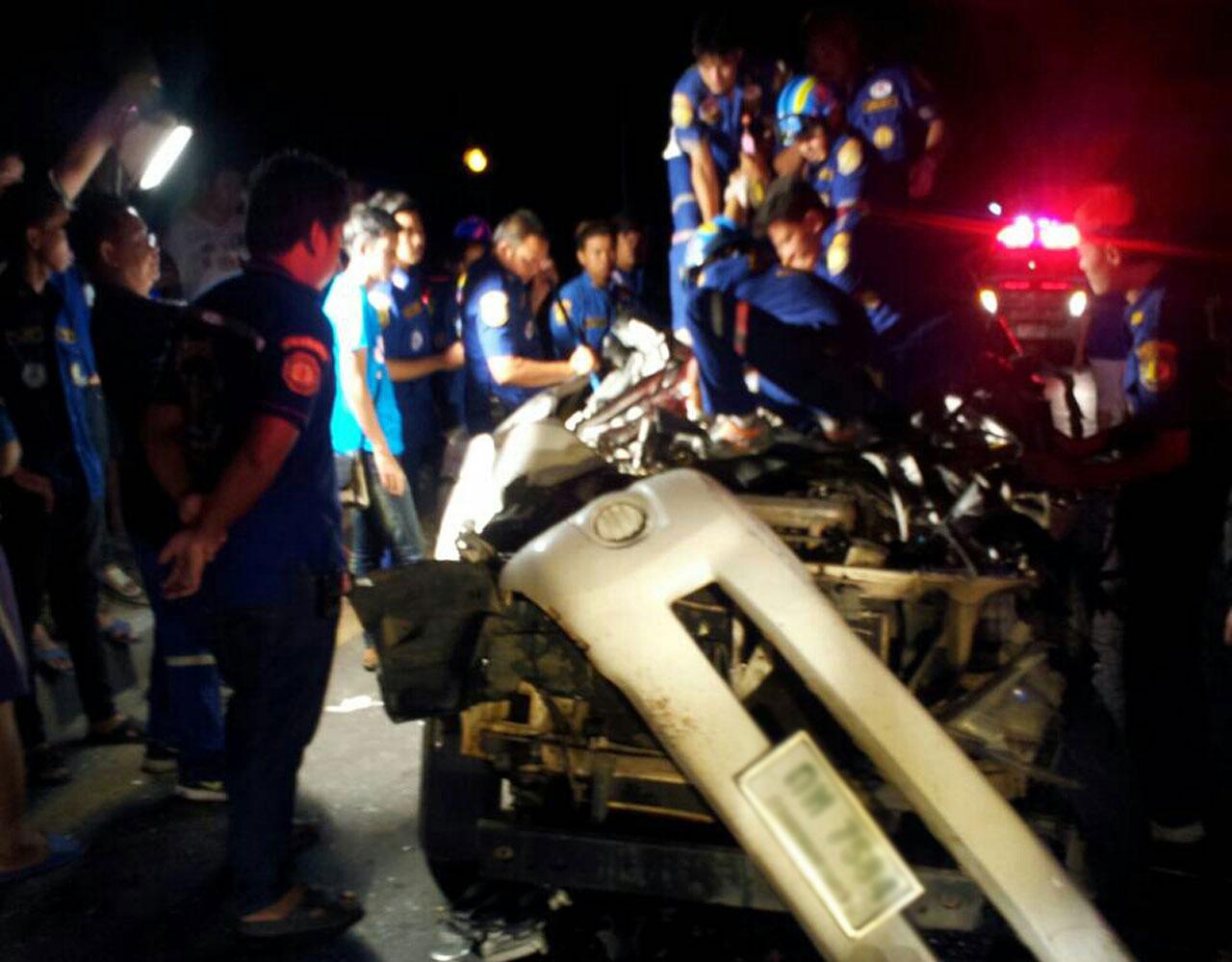 หนุ่มเมืองกาญจน์ซิ่งกระบะ พุ่งชนพ่วง 18 ล้อขณะกำลังกลับรถอย่างจัง รถพังยับทั้งคัน ตัวเองดับคาที่ อัดก๊อบปี้ในซากรถ ต้องงัดร่างออกมา...