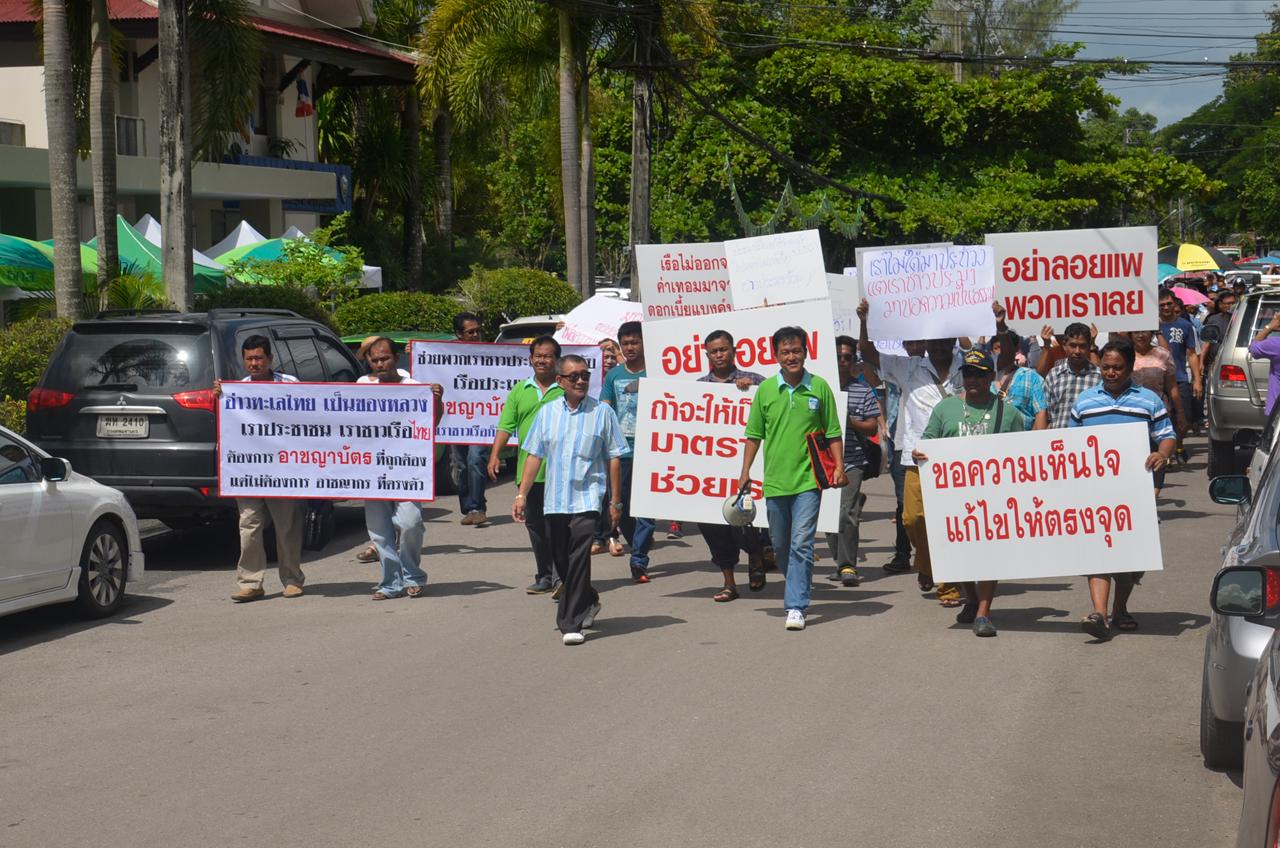 นายณรงค์ ชัยศิริ เลขาฯ สมาคมประมง จ.ตราด รักษาการณ์นายกสมาคมประมง จ.ตราด กล่าวว่า วันนี้ที่ชาวประมงเดินทางมารวมตัวกันนั้น พวกเราไม่ได้ต้องการสร้างความเดือดร้อนหรือจะรวมตัวกันประท้วงแต่อย่างใด เพียงแค่อยากจะนำเรื่องที่ชาวประมงได้รับความเดือดร้อนและรับผลกระทบต่างๆ จากหลักเกณฑ์ของภาครัฐกำหนดมา โดยเรื่องแรกอยากจะให้มีการออกอาชญาบัตรแก่เรือที่ยังไม่มี และให้ตรงตามประเภทการทำประมงจริง
