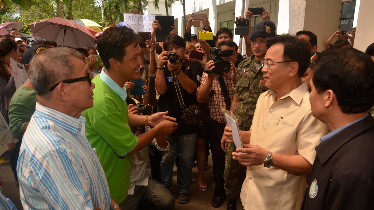ด้านนายณรงค์ ธีรจันทรางกูร ผู้ว่าราชการจังหวัดตราด เป็นผู้รับเรื่อง ท่ามกลางตำรวจและเจ้าหน้าที่ อส. หลายสิบนาย ที่ออกมาดูแลความเรียบร้อย โดยข้อเรียกร้องหลักๆ ที่ทางสมาคมประมงจังหวัดตราด ได้เรียกร้องให้ทางภาครัฐได้ช่วยเหลือชาวประมง เนื่องจากนโยบายของรัฐบาลในเรื่อง มี IUU Fishing บางข้อ ที่ชาวประมงไม่สามารถปฏิบัติตามนโยบายได้