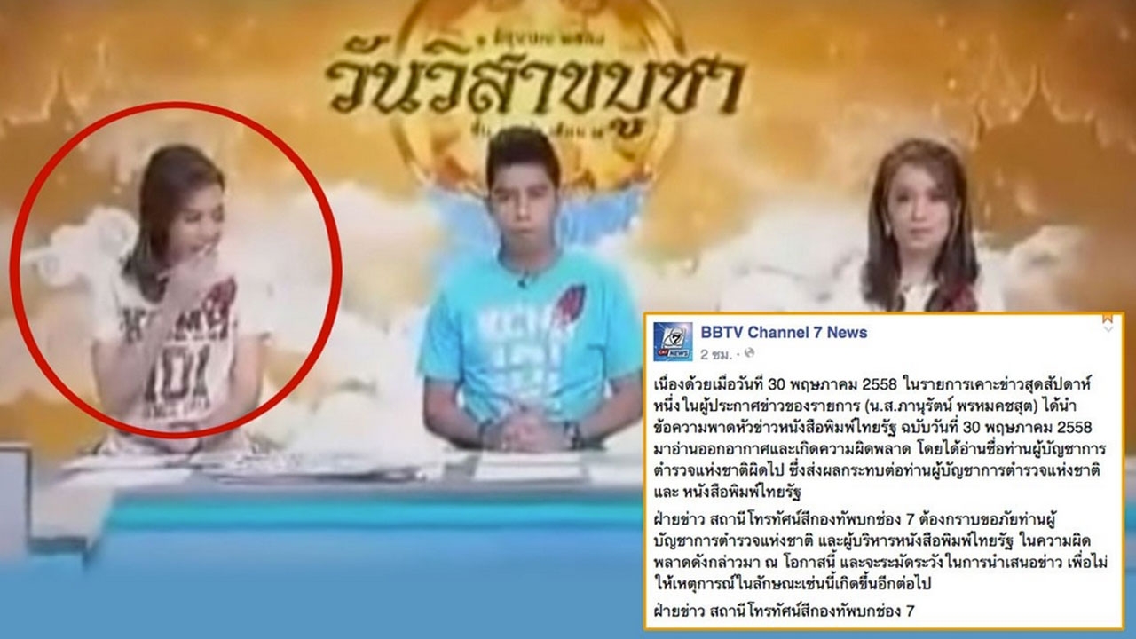 15:58 น.จากกรณีผู้ประกาศข่าวออกเสียงเรียกชื่อ พลตำรวจเอกสมยศ ผิดเพี้ยน จนเป็นที่วิพากษ์วิจารณ์ ล่าสุดผู้ประกาศสาว เตรียมประสานเข้าพบ ผบ.ตร.เพื่อขอโทษ ด้าน 'บิ๊กอ๊อด' ระบุ เห็นใจคนทำงานและเข้าใจว่าเป็นรายการสด ผิดพลาดกันได้