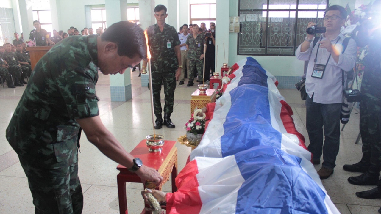 เมื่อเวลา 10.30 น. วันที่ 4 มิ.ย. 58 ที่ฌาปนสถานเทศบาลนครยะลา อ.เมือง จ.ยะลา พล.ท.ปราการ ชลยุทธ แม่ทัพภาคที่ 4 และผู้อำนวยการรักษาความมั่นคงภายในภาค 4 เป็นประธานในพิธีรดน้ำศพ และวางพวงหรีด จ.ส.อ.ทนง มีชัยชนะ ภูมิลำเนา ม.3 ต.พวงค์ อ.เมือง จ.สงขลา, จ.ส.อ.อดิศร แสงโกสิทธิ์ ภูมิลำเนา ม.3 ต.วังทอง อ.วังทอง จ.พิษณุโลก, พลทหารจิระคม ไกรฏทธิ์ ภูมิลำเนา ม.3 ต.ท่าชนะ อ.ท่าชนะ จ.สุราษฎร์ธานี และ พลทหารธีรนัย ล้วนเส้ง ภูมิลำเนา ม.2 ต.บ้านโพธิ์ อ.เมือง จ.ตรัง ซึ่งเสียชีวิตจากเหตุการณ์ความรุนแรง