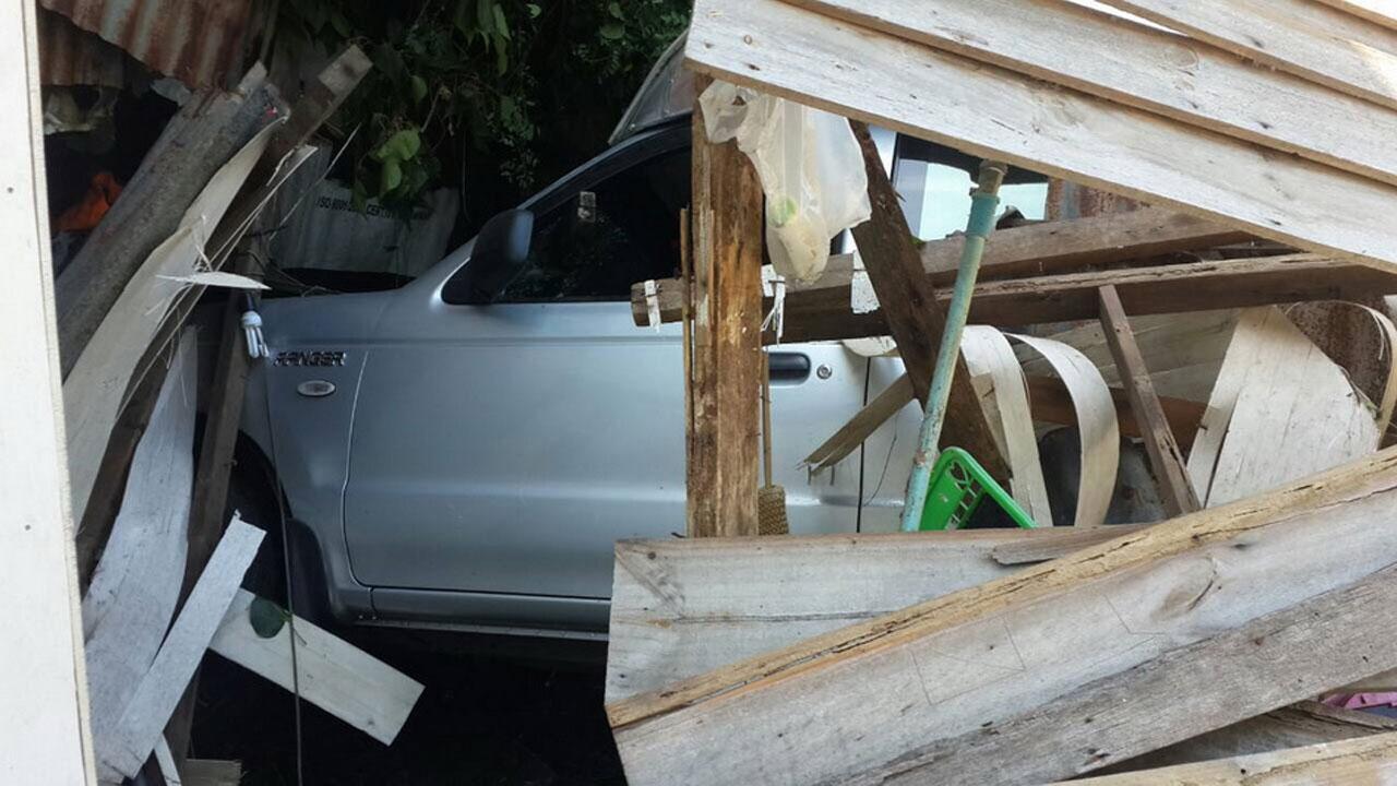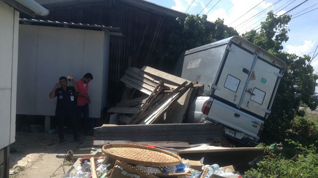 เมื่อเวลา 10.00 น.วันที่ 5 มิ.ย.58 พ.ต.ต.วีระพันธ์ โสมอินทร์ พนักงานสอบสวน สภ.บางปะกง รับแจ้งเหตุรถกระบะชนเข้าไปในบ้านคน มีผู้ได้รับบาดเจ็บบริเวณใกล้เคียงซอยสันติสุข ริมถนนสุขุมวิทสายเก่า ม.8 ต.สองคลอง อ.บางปะกง จึงประสานหน่วยกู้ภัยฉะเชิงเทรารุดตรวจสอบ