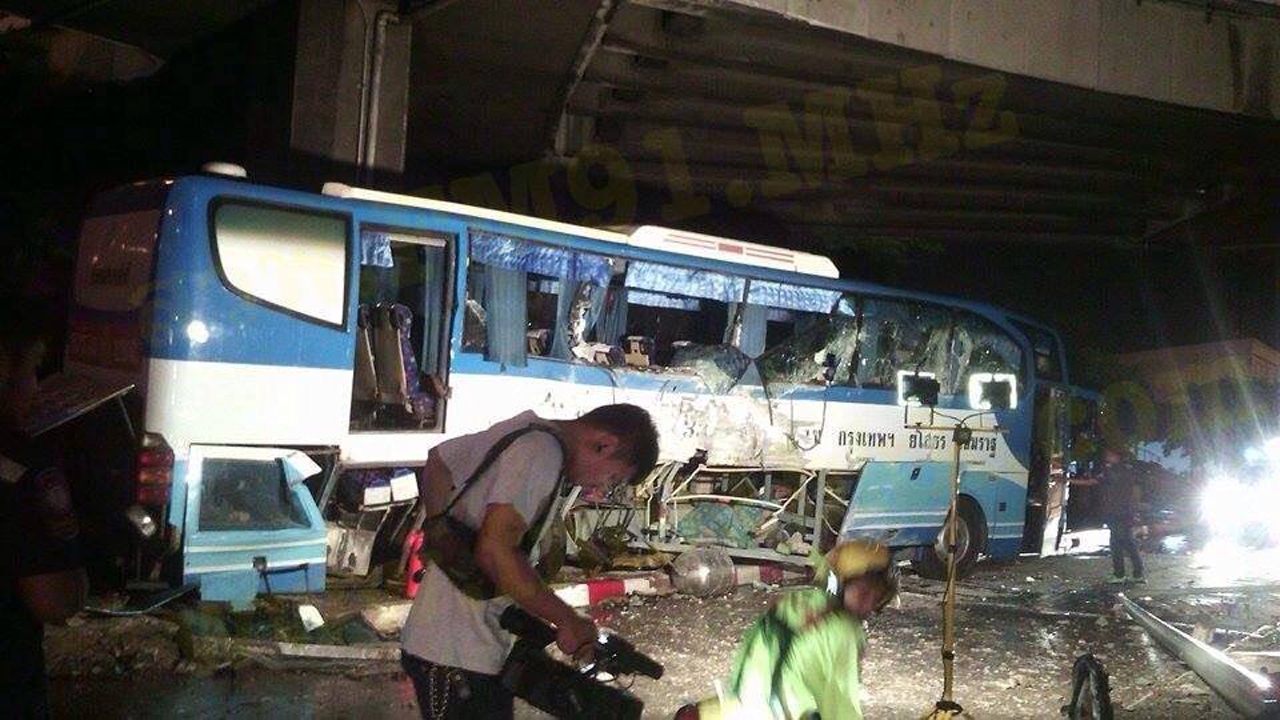 ฝนตกในกรุงเทพฯ ทำรถทัวร์ยโสธรลื่นไถลชนทะลุรั้วสนามบินดอนเมือง ไปหยุดอยู่ที่ตอหม้อสะพานยูเทิร์นหน้าอาคารคลังสินค้า มีผู้บาดเจ็บ 12 คน สาหัส 2 สาวโชคร้าย นิ้วขาด 5 นิ้ว...