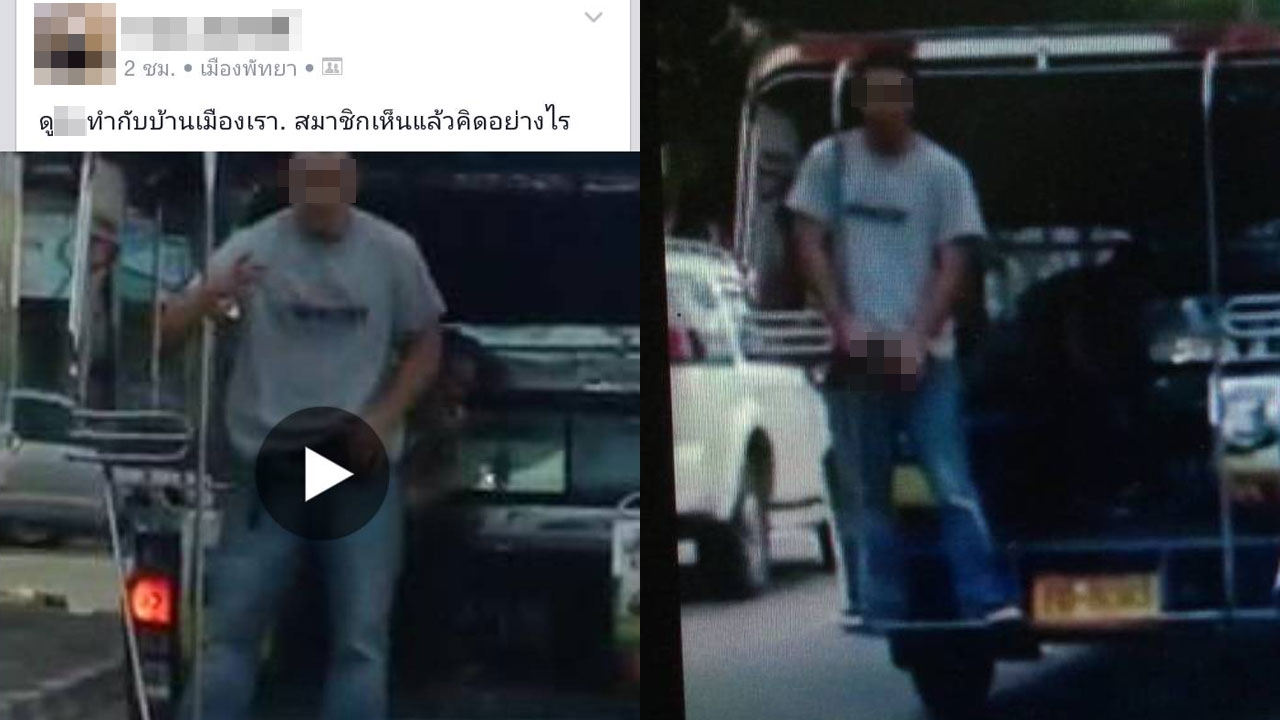 ทั้งนี้ คลิปดังกล่าวได้ถูกโพสต์ลงในเฟซบุ๊กของผู้ใช้ชื่อ "การุณ สุขสวัสดิ์ " https://www.facebook.com/profile.php?id=100007224033616 ซึ่งเกิดเหตุ เมื่อเวลา 18.30 น.ของวันที่ 10 มิ.ย.58 ชายหนุ่มชาวต่างชาติคนหนึ่ง สวมเสื้อยืดสีเทา กางเกงยีนส์ ยืนบริเวณบันไดรถสองแถว หมายเลขทะเบียน 10-6083 ชลบุรี เบอร์รถ 238 หรือ 298 ไม่แน่ใจ เพราะไม่ชัด ก่อนจะควักอวัยยะเพศของตนเองออกมายืนฉี่ขณะรถวิ่งอยู่บริเวณถนนพัทยาสาย 3 มุ่งหน้าถนนพัทยาใต้ จนมาติดไฟแดง เมื่อหันมาเห็นว่ามีคนกำลังถ่ายวิดีโอ ชายดังกล่าวได้ยกมือเหมือนจะขอโทษ