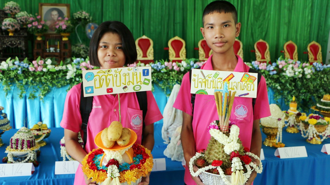 04.05น.คิดได้ไง เด็กนักเรียนม.2 ที่ฉะเชิงเทรา ใช้ ‘หัวมัน’ กับ ‘ทุเรียน’ มาทำพานไหว้ครูออกแบบได้แปลกแหวกแนว และแฝงความหมายถึงการมุ่งมั่นขยันเรียนได้อย่างลึกซึ้ง...