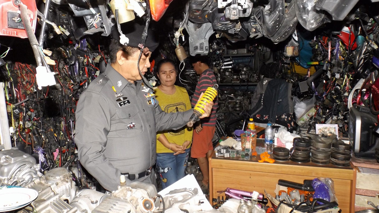 ด้าน พ.ต.อ.สำราญ นวลมา ผกก.สายตรวจ บก.สปพ.กล่าวว่า วันนี้จากการลงพื้นที่ตรวจค้นพบร้านที่เข้าข่ายจำนวน 8 แห่ง อาทิ ย่านลาดพร้าววังหิน ย่านสายไหม พระรามสอง บางกอกน้อย เฉลี่ยทั่ว กทม. พบมากที่สุดในแถบลาดพร้าว ส่วนใหญ่จะเป็นอะไหล่รถ จยย.ที่ถูกดัดแปลงสภาพ และซากรถที่ต้องรอการตรวจสอบ เนื่องจากบางคันถูกดัดแปลงถอดชิ้นส่วนจนจำสภาพเดิมไม่ได้ ที่สำคัญได้ตรวจยึดท่อไอเสียที่ไม่เก็บเสียงประมาณ 13 อัน เบื้องต้นนำของกลางทั้งหมดพร้อมตรวจยึดส่งพนักงานสอบสวน และนำส่วนของโครงรถที่ไม่มีทะเบียนตรวจพิสูจน์ที่ สมอ. เจ้าหน้าที่จะตรวจสอบอย่างละเอียดอีกครั้งว่า เลขคอรถและเลขเครื่องตรงกันหรือไม่และเป็นรถที่เคยถูกแจ้งหายในท้องที่ใดมาก่อน คาดว่าใช้เวลาไม่กี่วันก็แล้วเสร็จ จากนั้นก็จะเรียกเจ้าของร้านทั้งหมดมาชี้แจงเพื่อรับทราบข้อกล่าวหาต่อไป