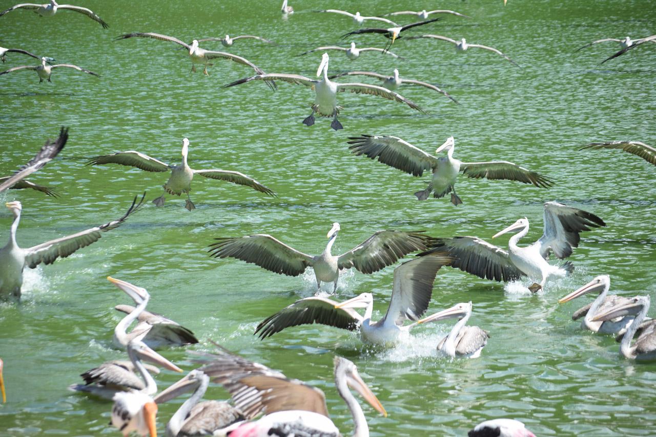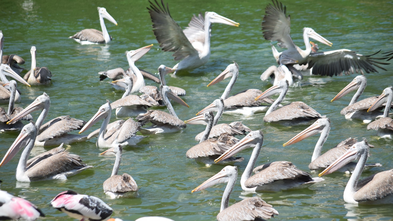 เมื่อเวลา 11.00 น. วันที่ 11 มิ.ย. 58 ที่สวนสัตว์เปิดเขาเขียว อ.ศรีราชา จ.ชลบุรี นายสุริยา แสงพงค์ ผู้อำนวยการสวนสัตว์เปิดเขาเขียว เปิดเผยว่า ในช่วงนี้ บริเวณอ่างเก็บน้ำสวนพฤกษศาสตร์ ภายในสวนสัตว์ฯ ได้มีฝูงนกกระทุง นกน้ำขนาดใหญ่ ขนสีขาวปนเทา ตัวขนาดเท่าห่าน ซึ่งเป็นนกธรรมชาติ ที่กระจายพันธุ์มาจากประเทศเพื่อนบ้าน ได้อพยพเข้ามาหากิน และทำรัง รวมกลุ่มกันเป็นฝูงใหญ่เป็นจำนวนมาก ร่วมกันไล่ต้อนฝูงปลาขนาดเล็ก แล้วใช้จะงอยปากล่างไล่ช้อนขึ้นมากินอย่างรวดเร็ว