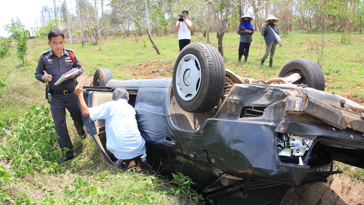 ในที่เกิดเหตุ พบรถเบนซ์สภาพเก่า สีเทา ทะเบียน กข 79 นครพนม อยู่ในสภาพพลิกคว่ำหงายท้อง ตกคลองริมถนน เสียหายทั้งคัน ทราบชื่อคนขับภายหลัง คือ นายปนิธิ์ เรืองวรบูรณ์ อายุ 35 ปี ซึ่งได้รับบาดเจ็บอาการสาหัส มีบาดแผลตามร่างกาย จึงถูกนำตัวส่งไปรักษาที่โรงพยาบาลนครพนม ใกล้ที่เกิดเหตุพบรถยนต์เก๋งคู่กรณี ยี่ห้อโตโยต้าอัลติส สีขาว ทะเบียน กค 5566 นครพนม มีรอยเฉี่ยวชนได้รับความเสียหายเล็กน้อย บริเวณกันชนหลังซ้าย ทราบชื่อคนขับคือ ร.อ.ขวัญแก้ว เกษประทุม อายุ 30 ปี พยาบาลทหาร สังกัดโรงพยาบาลค่ายพระยอดเมืองขวาง จทบ.นครพนม ไม่ได้รับบาดเจ็บ