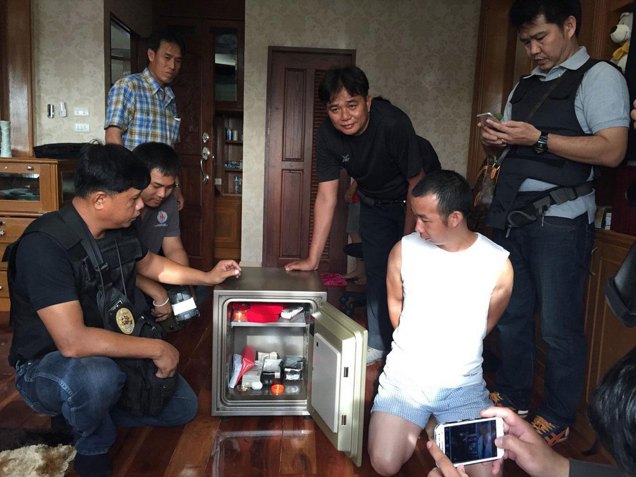 จากการตรวจค้นภายในบ้านพัก พบ นายรัชพล ชินนูทิศ อายุ 31 ปี พร้อม น.ส.ฐานิดา แซ่เล่า อายุ 30 ปี ภรรยาและลูกชาย อยู่ภายในห้องนอน พบทรัพย์สินหลายรายการซุกซ่อนอยู่ในตู้เซฟ มีเงินไทย 1.5 ล้านบาท เงินดอลลาร์ เงินลาวอีก 1 มัด ทองคำแท่งและทองรูปพรรณจำนวนหนึ่ง ที่หัวเตียงนอนพบอาวุธปืนยาว ขนาด 22 มม. จำนวน 1 กระบอก ปืนพกสั้น ขนาด 9 มม. อีก 1 กระบอก รถยนต์โตโยต้าฟอร์จูนเนอร์ สีขาว ทะเบียน ญภ-9779 กรุงเทพฯ รถปิกอัพโตโยต้า 4 ประตู สีขาว ทะเบียน กบ-8232 เชียงราย รถยนต์ฟอร์ดเรนเจอร์ 4 ประตู สีแดง ทะเบียน กพ-5762 เชียงราย รถยนต์เก๋งโตโยต้าไฮบริด สีขาว ทะเบียน 9779 กรุงเทพฯ รถยนต์โตโยต้าไฮลักซ์ 4 ประตู สีขาว ทะเบียน กต-3030 เชียงราย รวมทั้งหมด 5 คัน จึงยึดไว้เป็นของกลาง