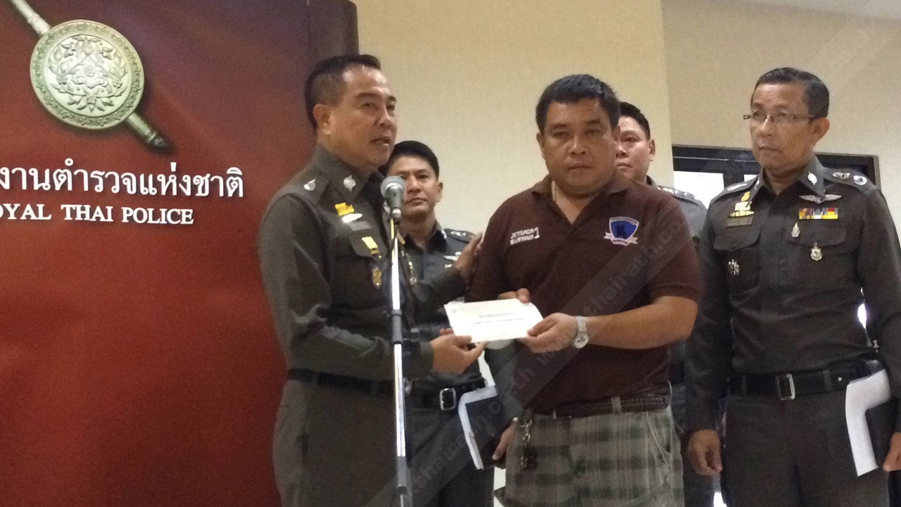 เมื่อวันที่ 15 มิ.ย.58 พล.ต.อ.สมยศ พุ่มพันธุ์ม่วง ผู้บัญชาการตำรวจแห่งชาติ มอบเงินรางวัลให้กับ ร.ต.ท.สัญญา จงเกิดผล รองสารวัตรสืบสวนสอบสวน ตำรวจนครบาลราษฎร์บูรณะ จากกรณีเสี่ยงชีวิตเข้าจับกุมคนร้าย ที่ก่อเหตุกระชากสร้อยคอทองคำ น้ำหนัก 1 บาท ของประชาชน จนได้รับบาดเจ็บ เหตุเกิดในพื้นที่ตำรวจนครบาลบางมด เมื่อวันที่ 14 มิถุนายน ที่ผ่านมา