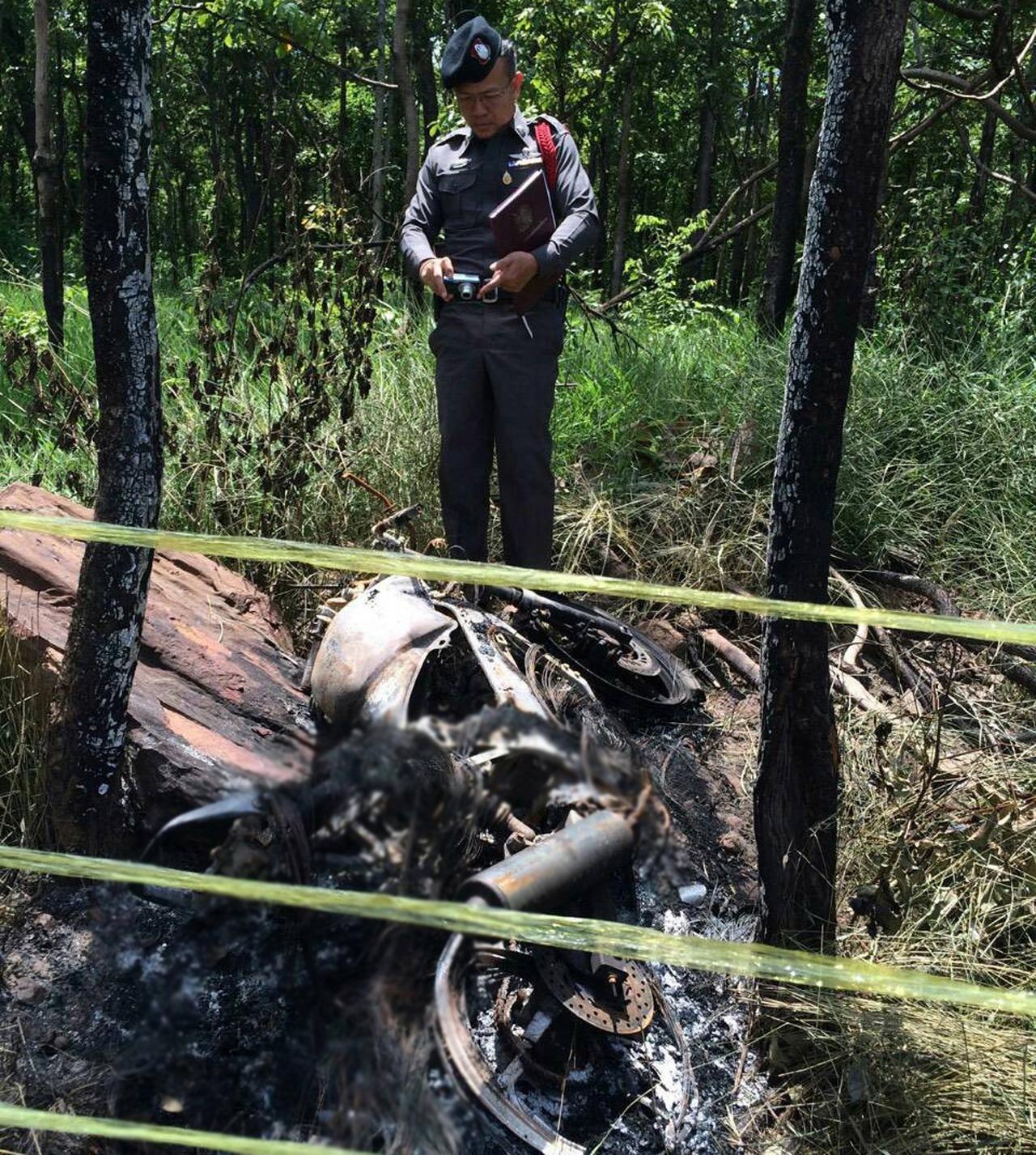 ที่เกิดเหตุ ห่างจากถนน 100 เมตร เป็นป่าสวนยาง พบศพชายทราบชื่อภายหลัง ว่า นายนงศักดิ์ สอนนุชาติ อายุ 43 ปี ชาวบ้าน อ.นิคมน้ำอูน จ.สกลนคร สภาพศพนอนหงาย ร่างกายถูกไฟไหม้แต่ไม่หมด ยังคงสภาพร่างกายมนุษย์อยู่ แพทย์นำศพไปเก็บไว้ที่โรงพยาบาลวังสามหมอ ต้นไม้บริเวณที่เกิดเหตุถูกไฟไหม้เป็นวงกว้าง ห่างไปประมาณ 300 เมตร ในป่าสวนยาง พบรถจักรยานยนต์ฮอนด้า แบบชาย หมายเลขตัวถัง NCB 150-00131881 ถูกเผาด้วยยางรถยนต์ ไหม้เสียหายทั้งคัน มีเศษใยเหล็กยางรถยนต์วางอยู่บนซากรถจักรยานยนต์ 2 วง